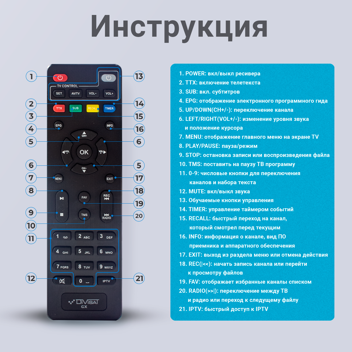 Купить Пульт для приставки Divisat GX, 2211, 4111, 4211, 5111, 5211, 3204 приставок, ресиверов