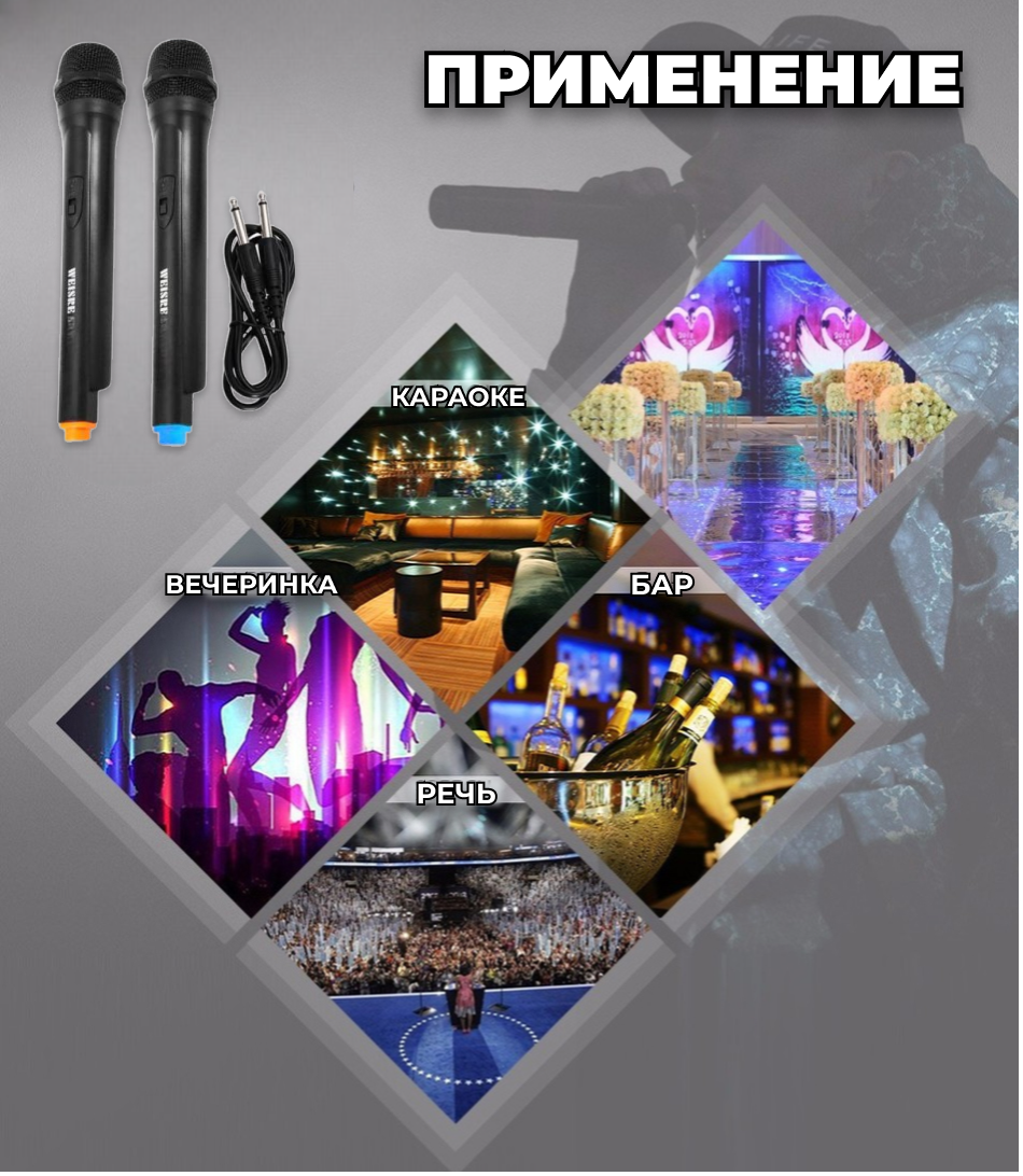 Беспроводные микрофоны для караоке Weisre WM-03V, 2 шт интересное: