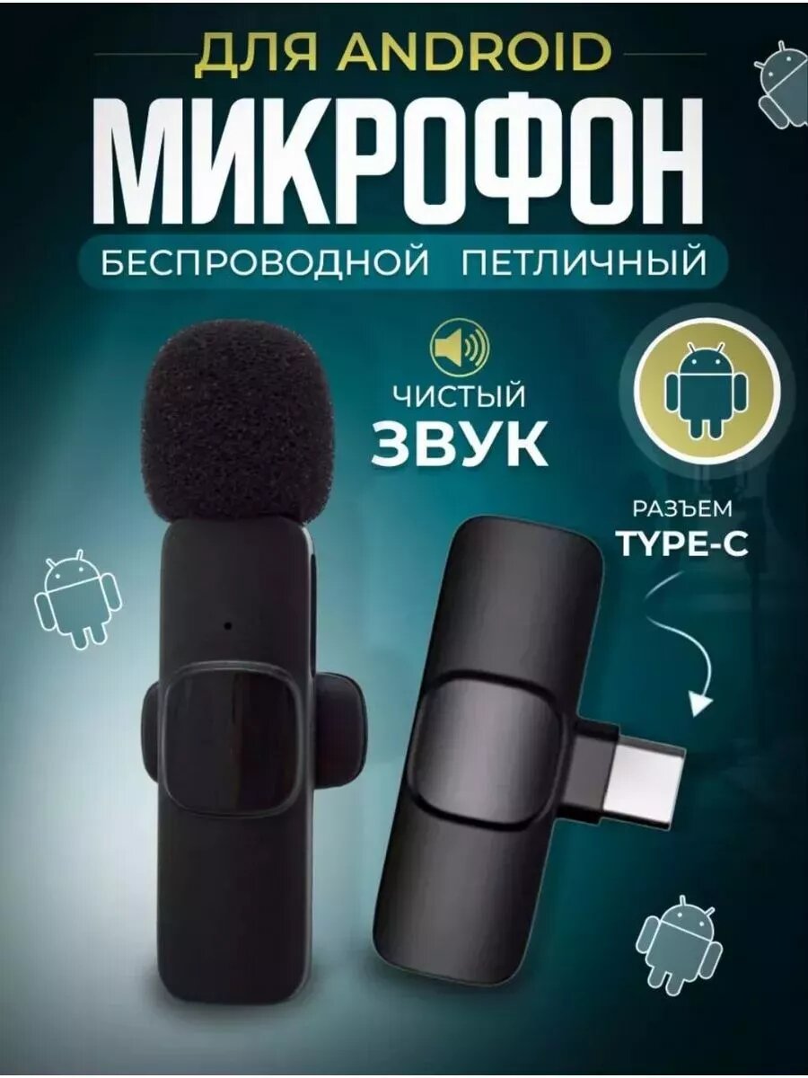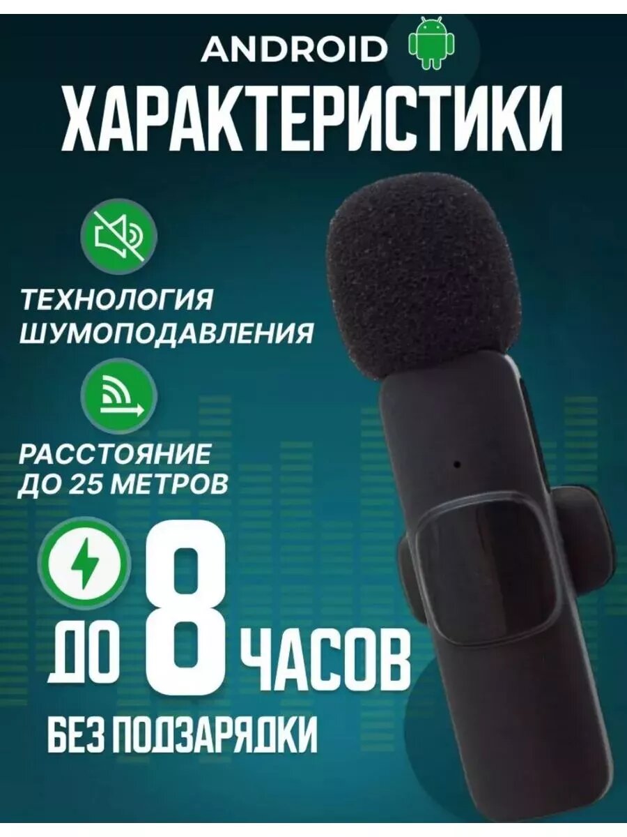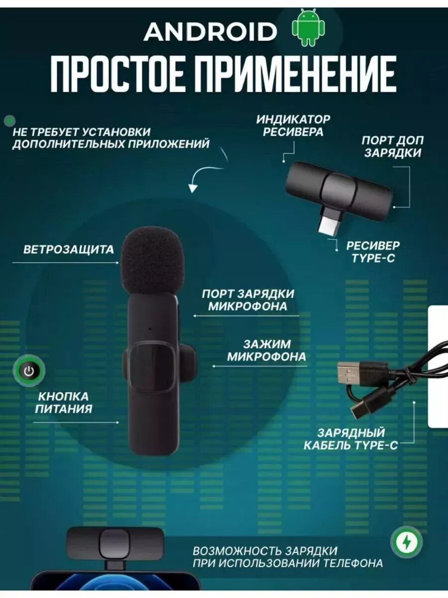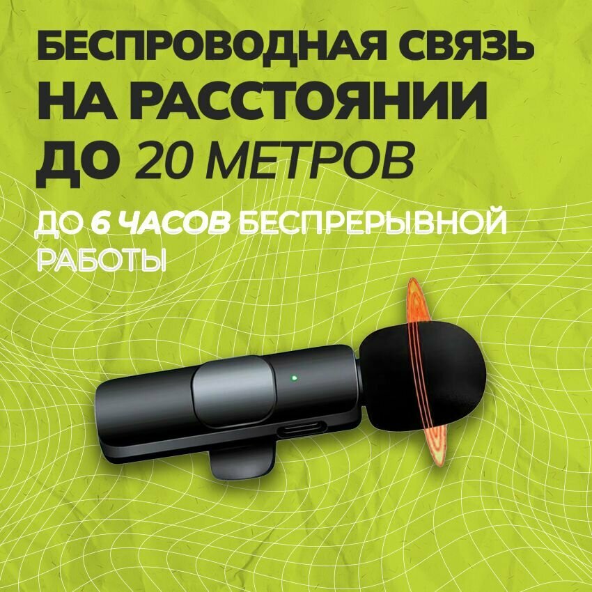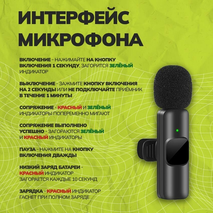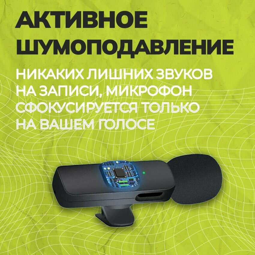 Микрофон петличный беспроводной, с шумоподавлением, петличка, для мобильного телефона, разъем Lightning, для Iphone, черный, 2шт