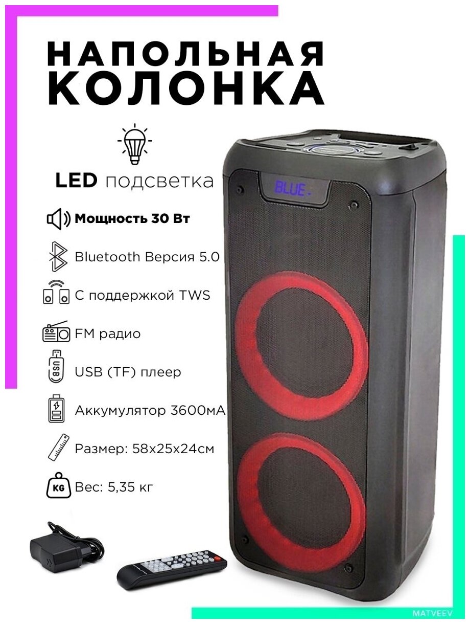 Купить Колонка с Bluetooth активная напольная акустика OT-SPF05 Орбита