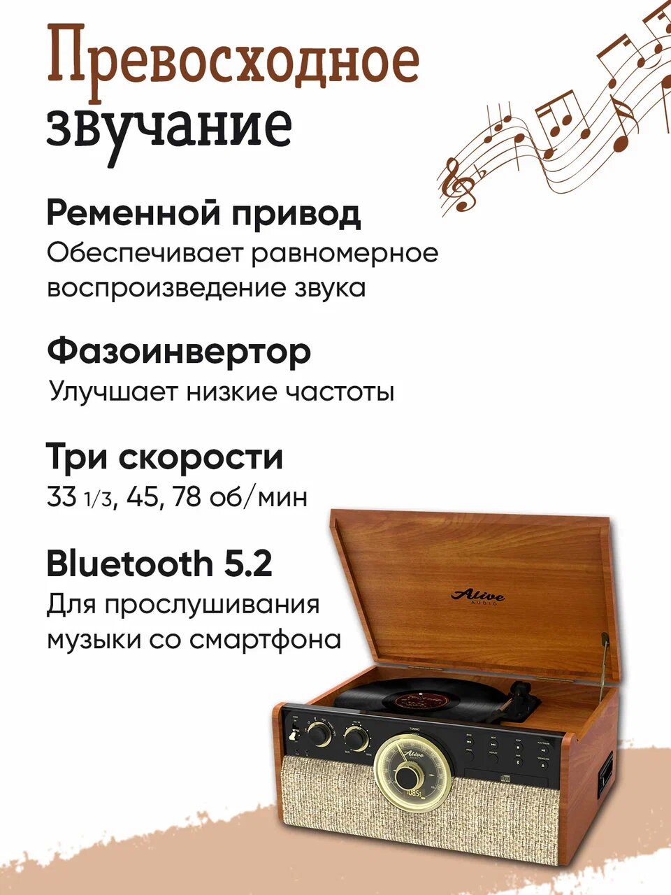 Виниловый проигрыватель Alive Audio Great Gatsby Light Wood (CD, FM-радио, кассетник, Bluetooth, встроенные динамики) интересное:
