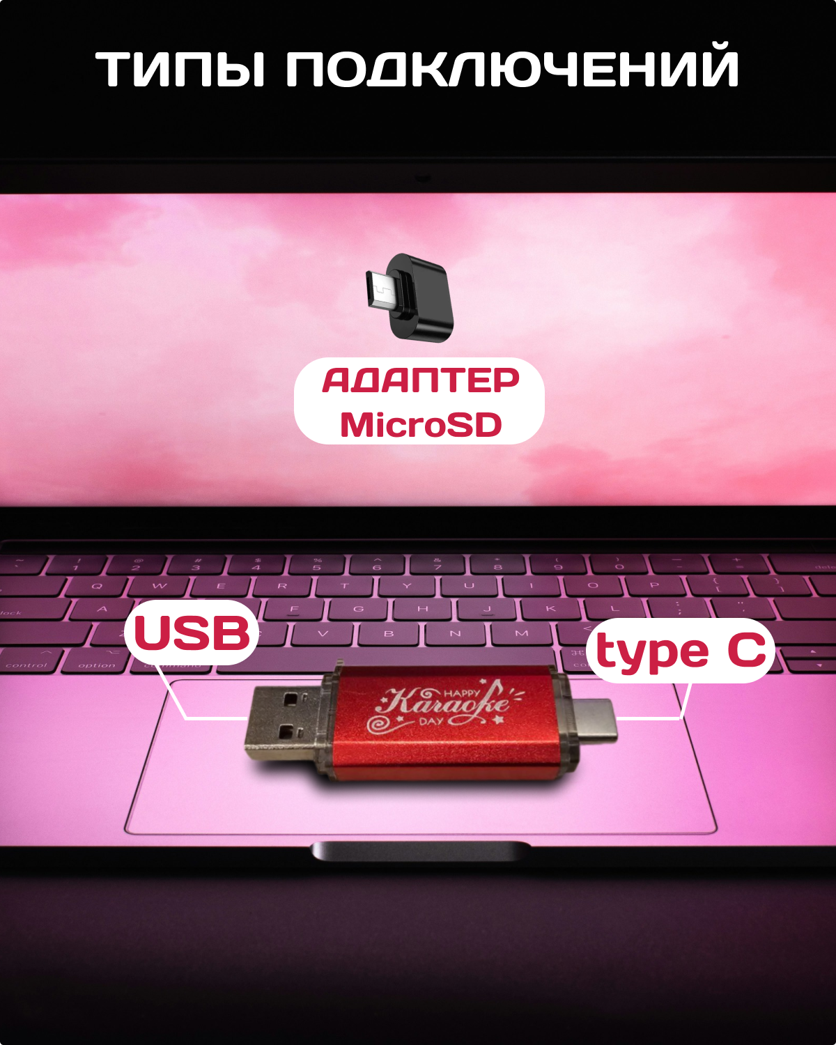 Караоке 1207 песен на USB Диске с Type C - MicroSD 3в1 интересное:
