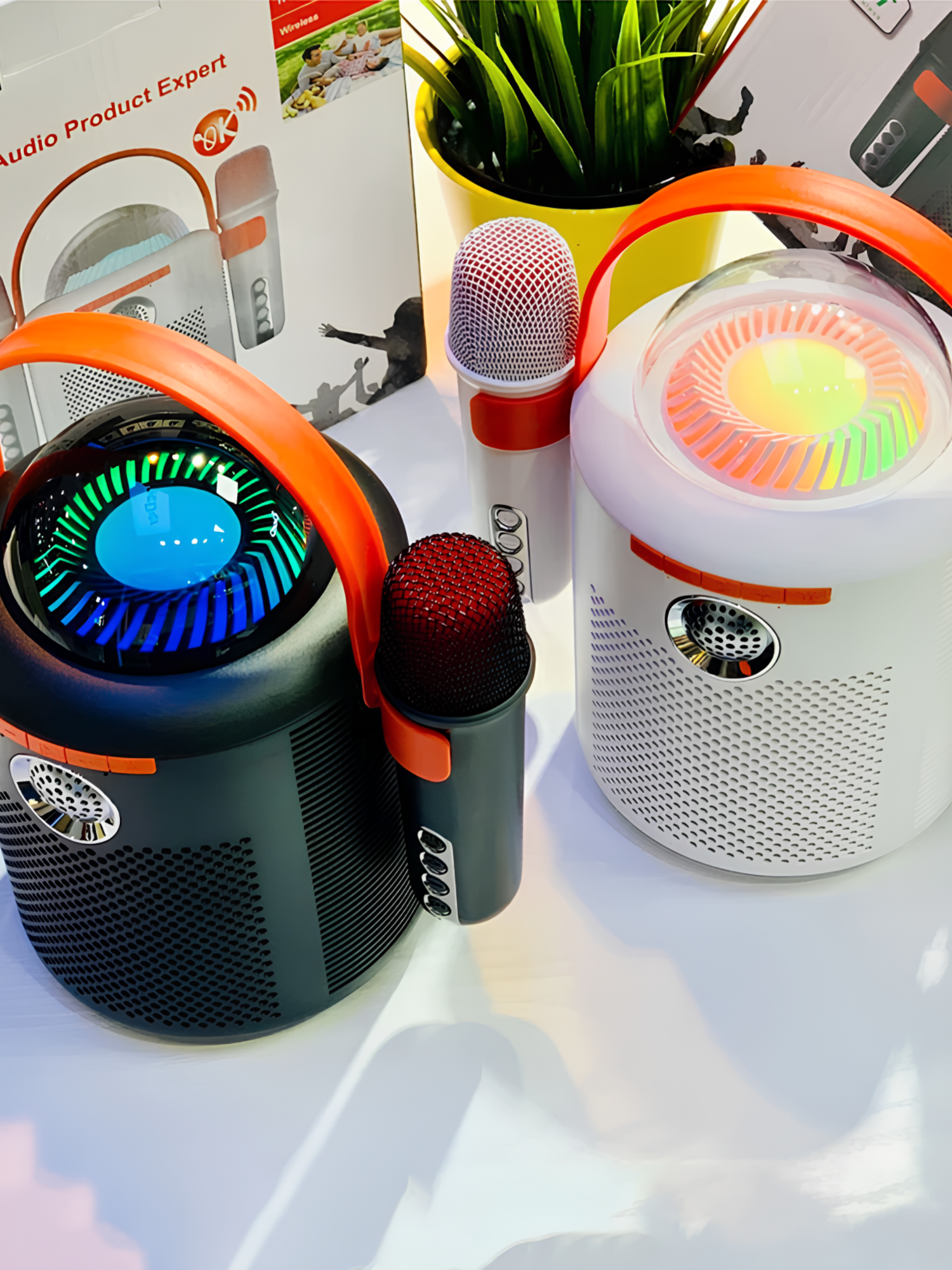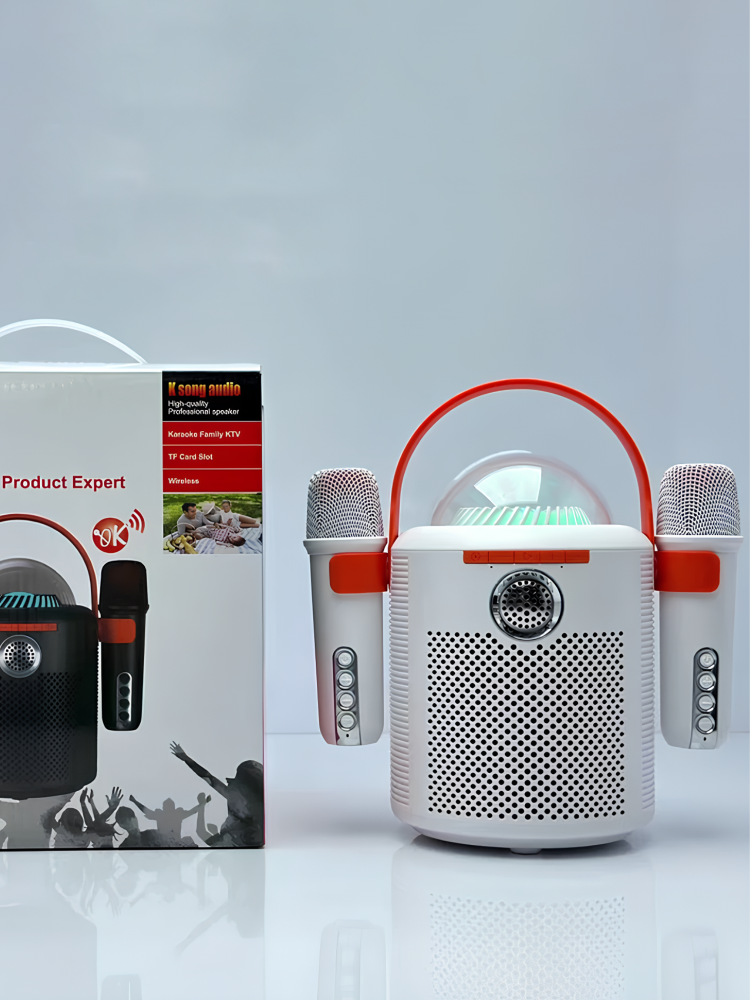 Купить Беспроводная блютуз колонка караоке DUO SING, можно петь дуэтом для вечеринок мощный басс, белая