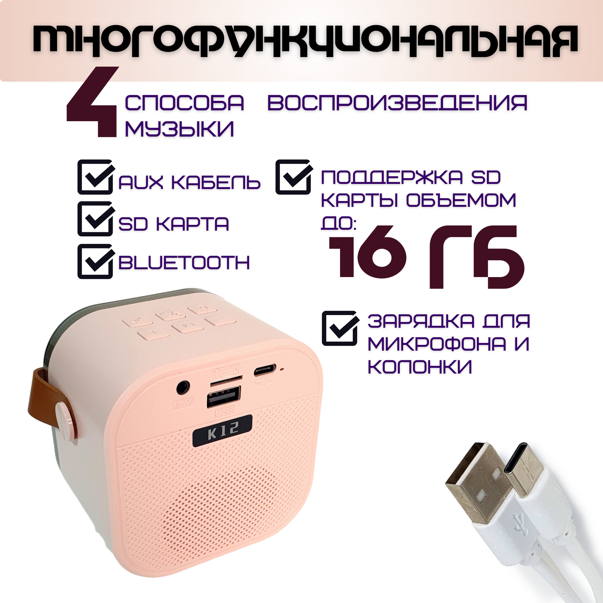 Ниже Вы можете прочитать отзывы на Беспроводной микрофон для караоке с портативной колонкой и RGB подсветкой , персиково-розовая, ознакомится с подробными характеристиками, посмотреть интересные обзоры и фотографии на Беспроводной микрофон для караоке с портативной колонкой и RGB подсветкой , персиково-розовая.