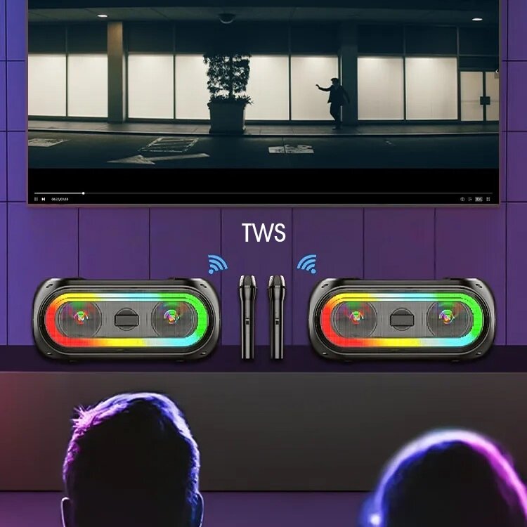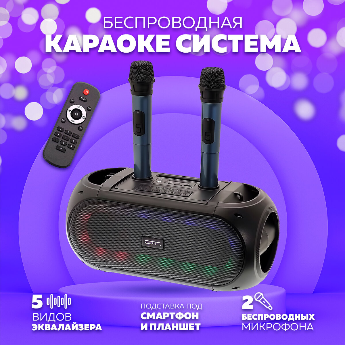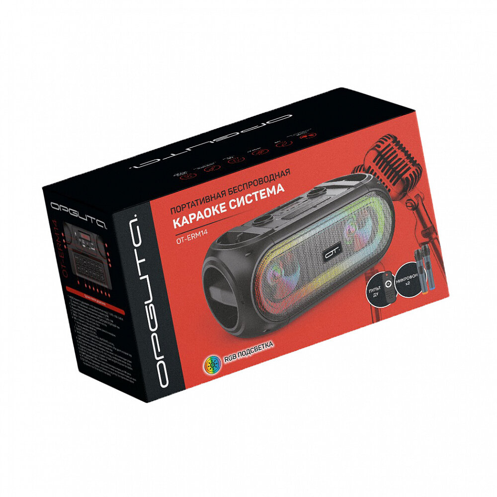 Купить Караоке-система с беспроводными микрофонами с RGB подсветкой (2 микр, Bluetooth 5.0) OT-ERM14черная Орбита