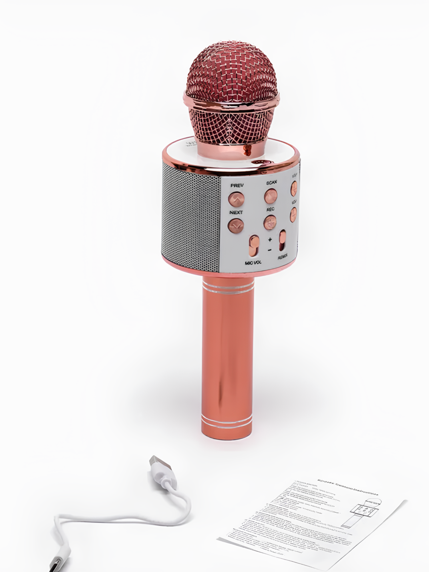 Беспроводной микрофон караоке с селфи-модом FUNNY TIME, с корректором голоса и поддержкой микро-карт, розовое-золото