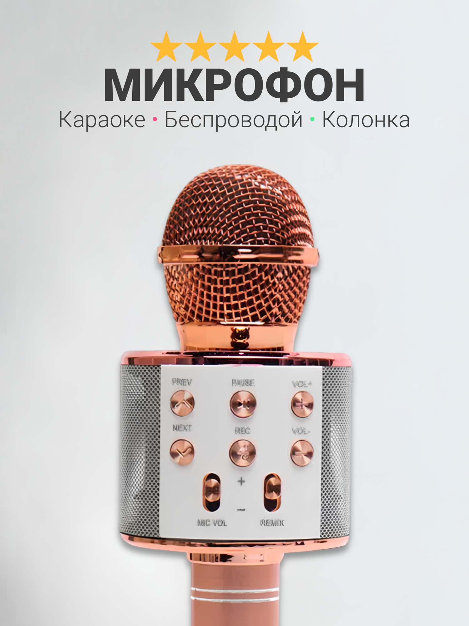 Купить Беспроводной микрофон караоке с селфи-модом FUNNY TIME, с корректором голоса и поддержкой микро-карт, розовое-золото