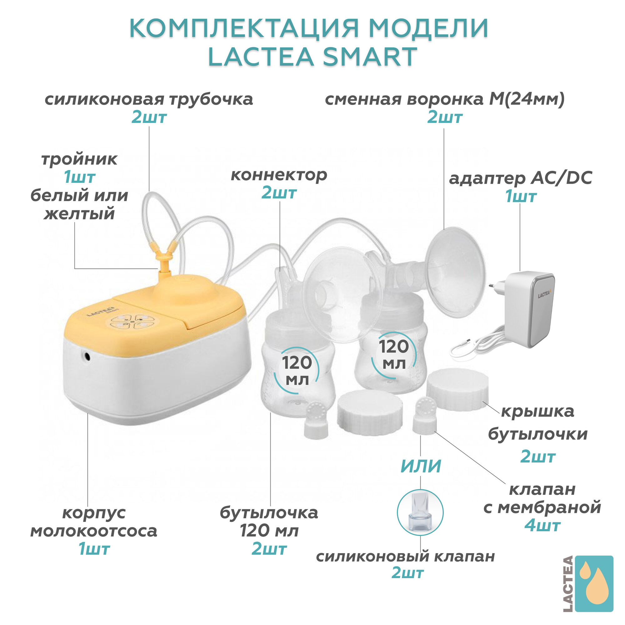 Электрический молокоотсос LACTEA Smart, двойное сцеживание, 3 режима