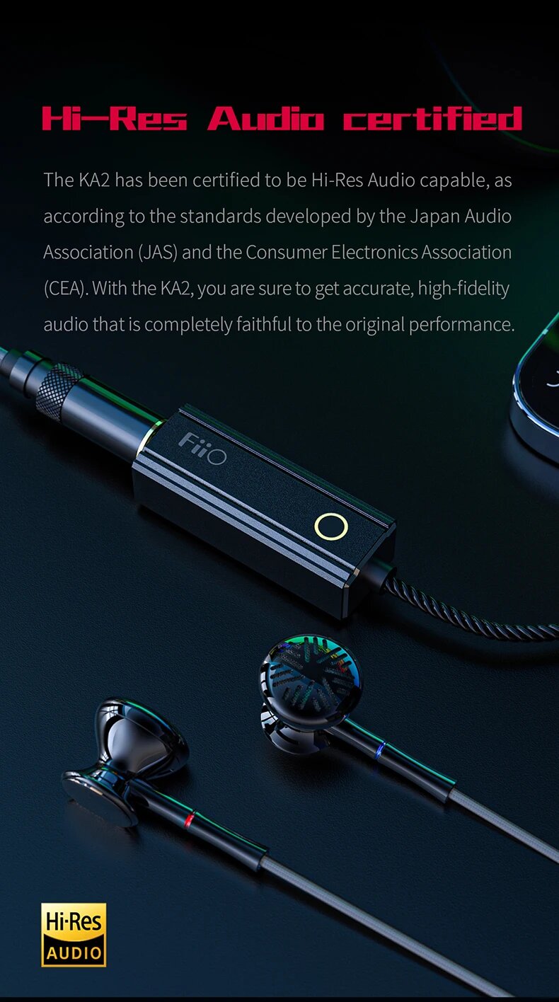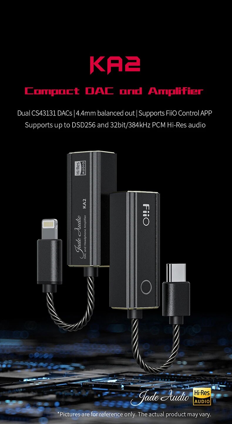 Купить Мини-усилитель для наушников FiiO JadeAudio KA2 AMP USB DAC Type-C/Lightning на аудиокабель 4,4 мм, двойные чипы CS43131 PCM384 DSD256, KA2 Lightning