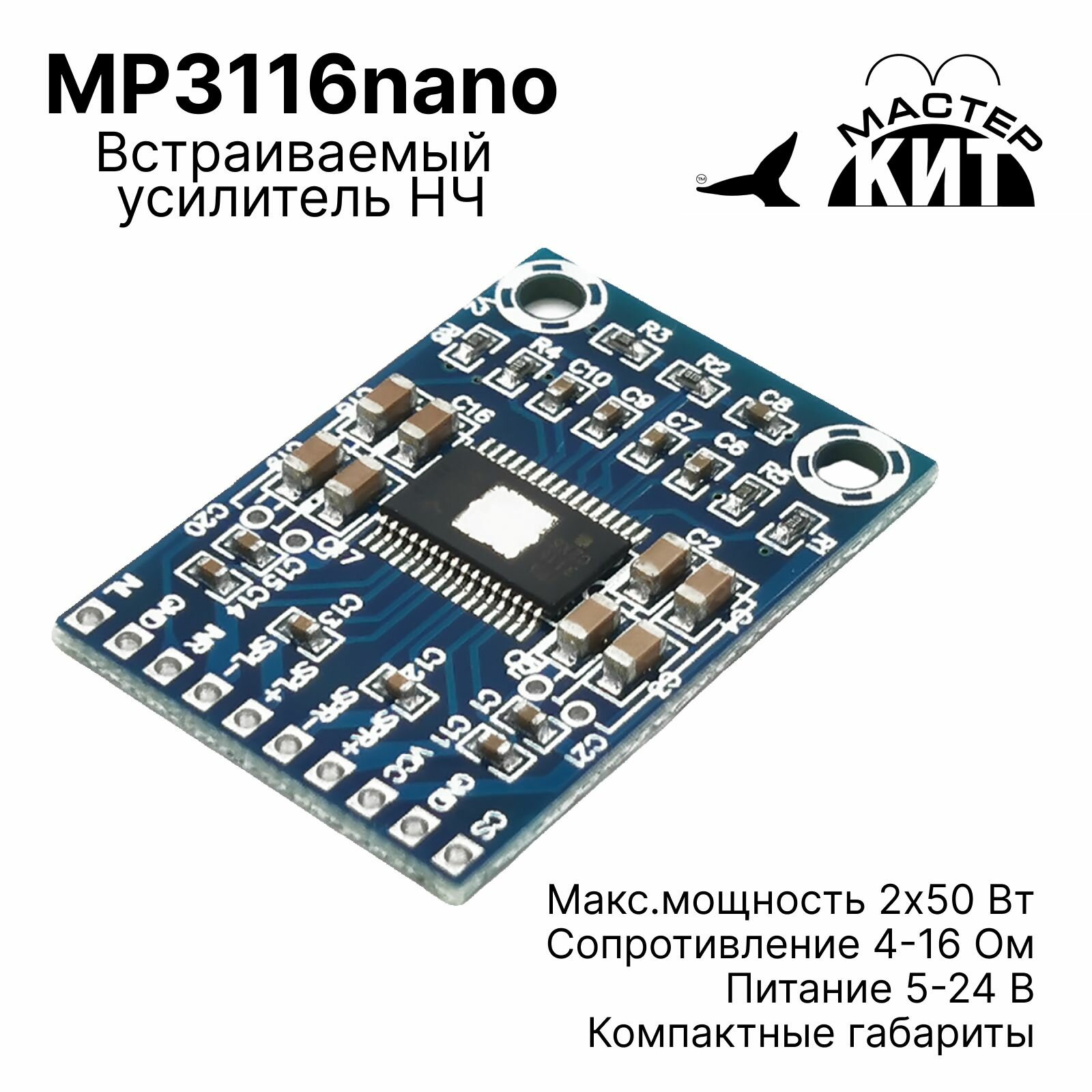 Усилитель звука класса D, Плата стерео, TPA3116, MP3116nano Мастер Кит интересное: