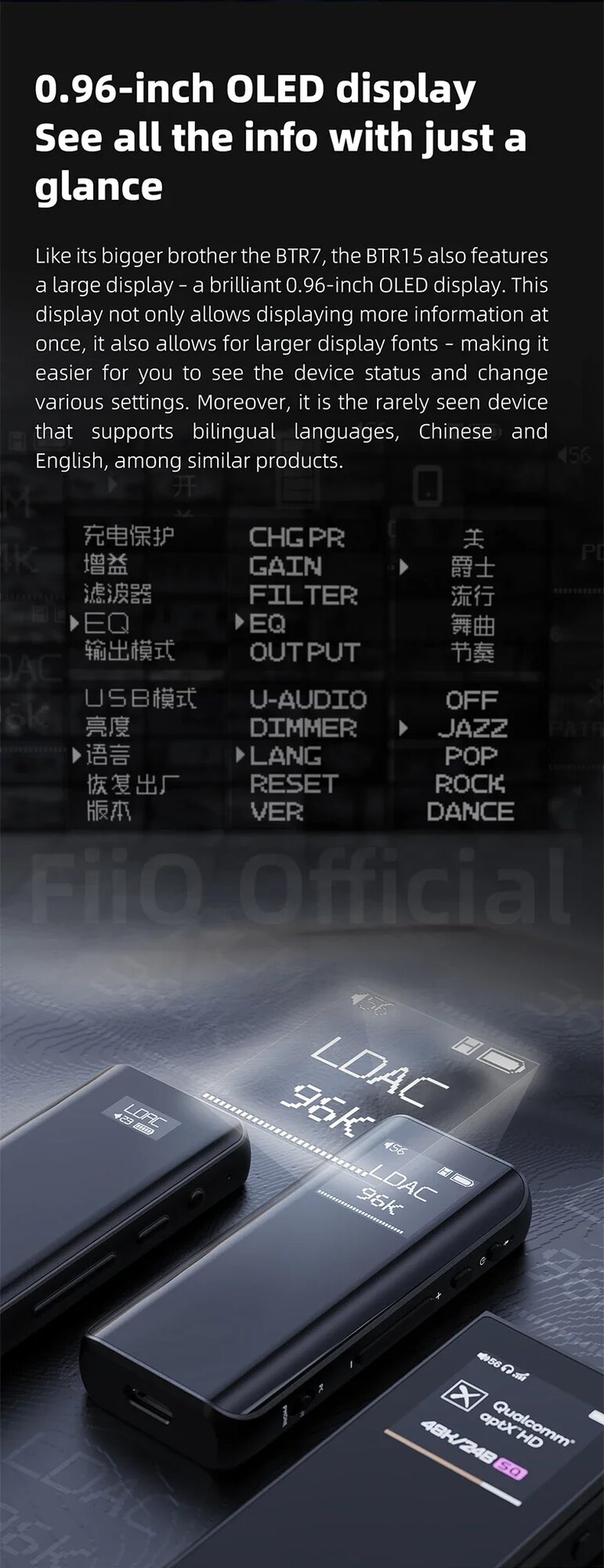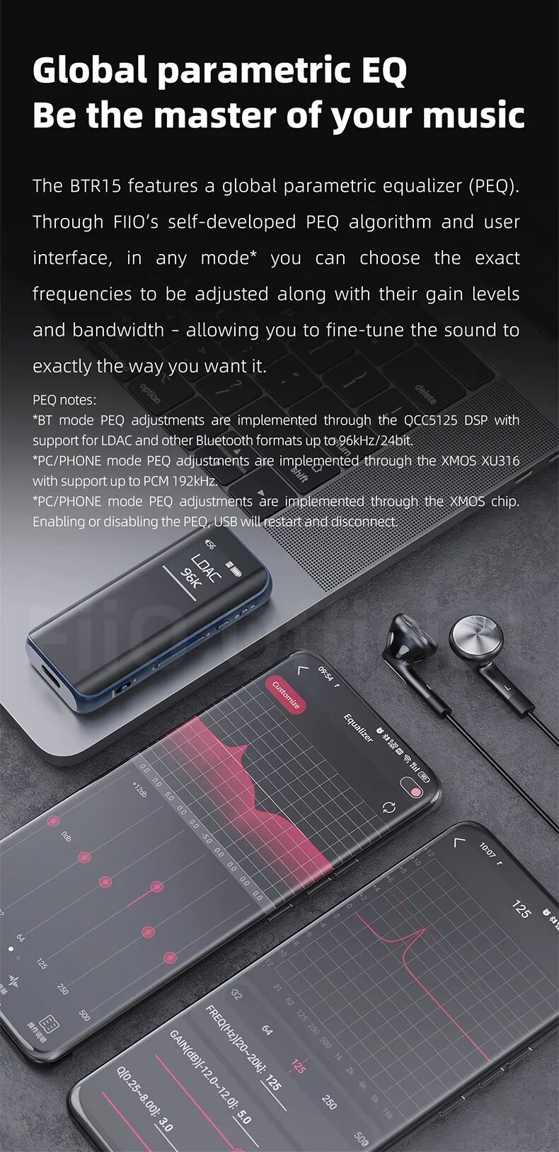 FiiO BTR15 Bluetooth 5.1 приемник USB ЦАП Усилитель для наушников Hi-Res 2 * ES9219MQ DSD256 LDAC/aptX, BTR15 black