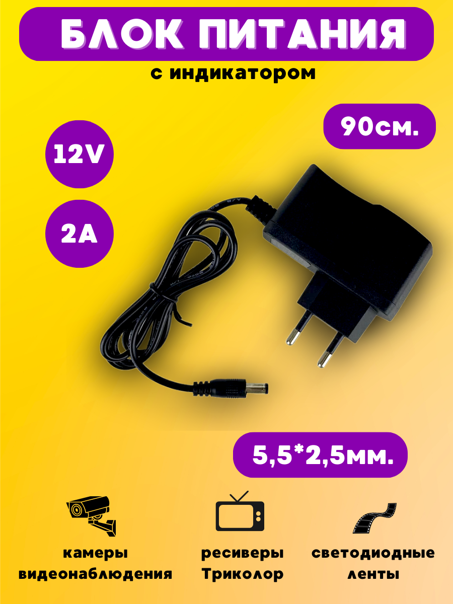 Блок адаптер питания для ресивера Триколор, камер видеонаблюдения, модема, светодиодной ленты 12В 2А интересное: