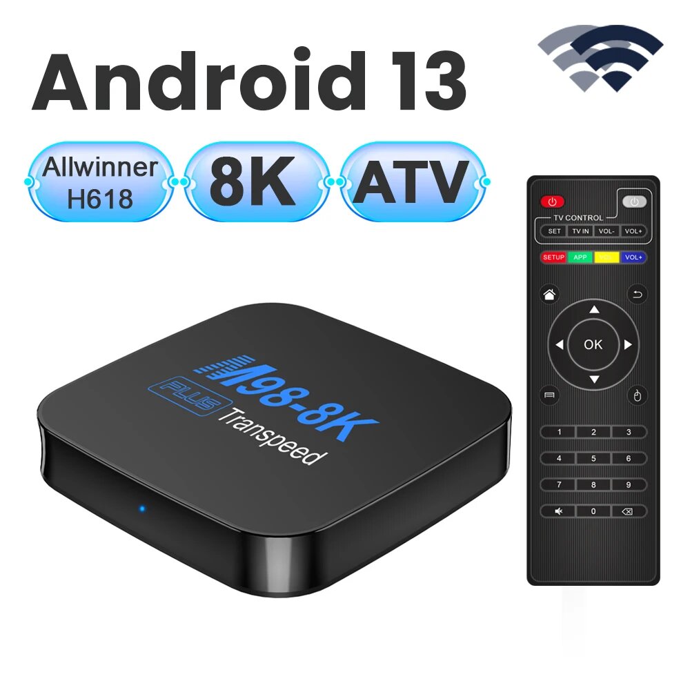 ТВ-приставка Transpeed Android 13 Allwinner H618 ATV с приложениями для ТВ 8K 4K Dual Wifi Quad Core Cortex A53 BT5.0 телеприставка, 4G128G Voice, Европейская интересное: