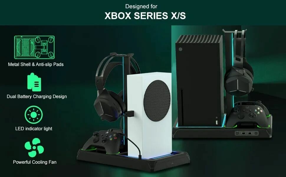 Вертикальная подставка для Xbox Series S / X с охлаждением + 2 аккумулятора и зарядная станция A3810 интересное:
