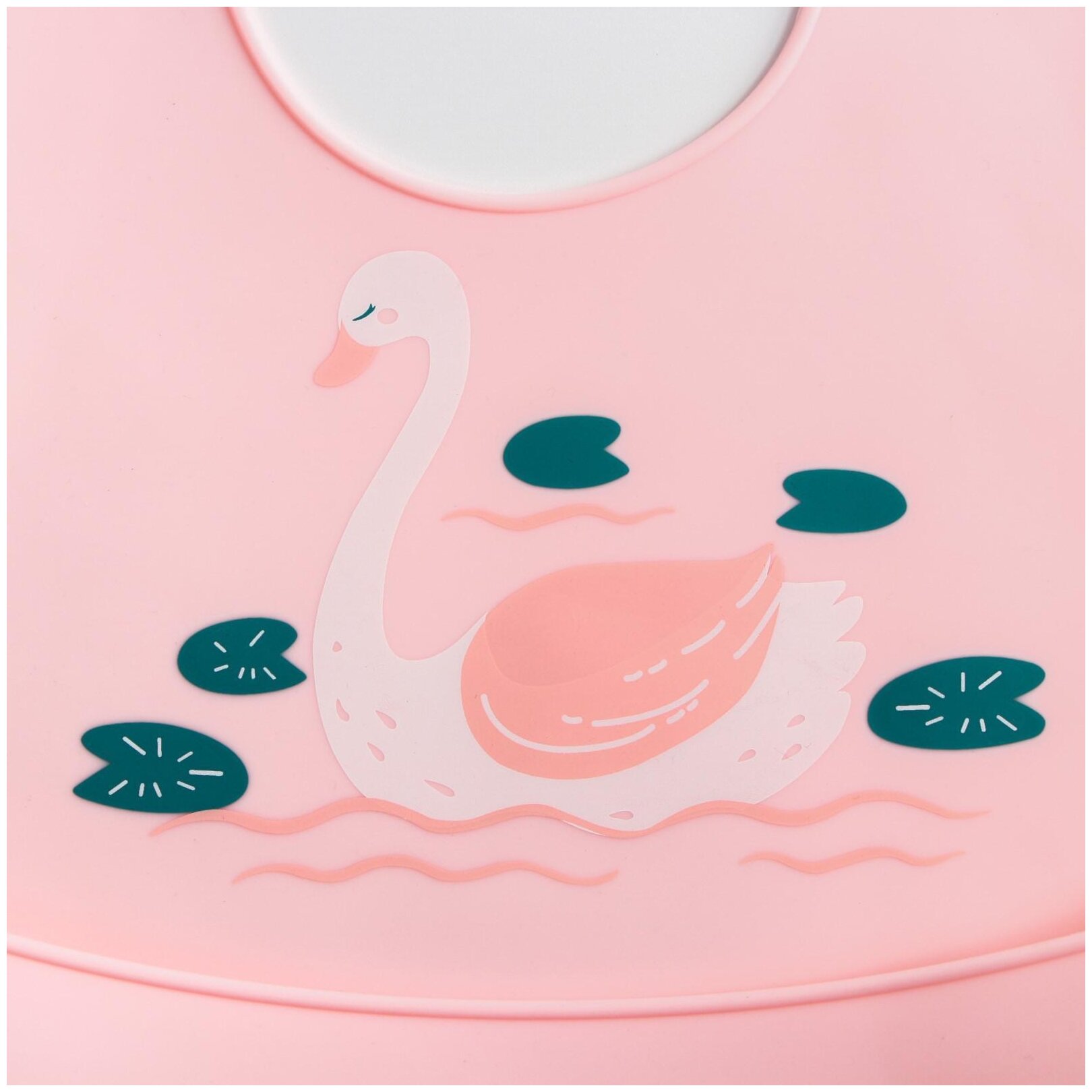 Нагрудник силиконовый, на кнопках, с карманом "Лебедь", цвет розовый 5385563
