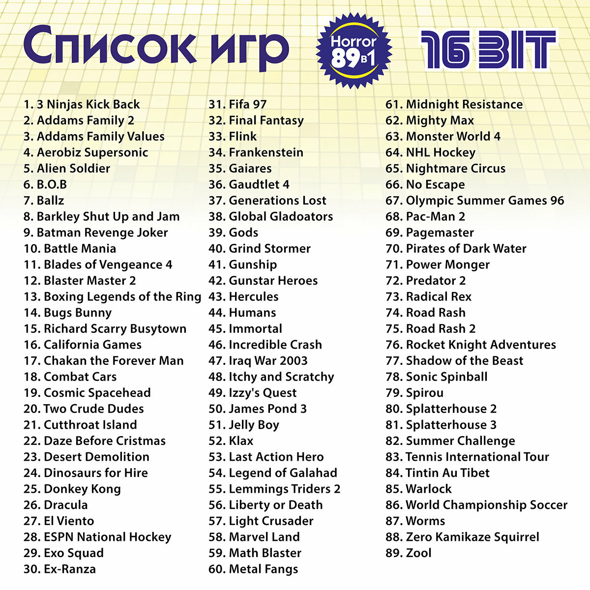 Картридж для приставок 16 бит Sega Magistr Mega Drive / 89 игр Ужасы, Horror интересное: