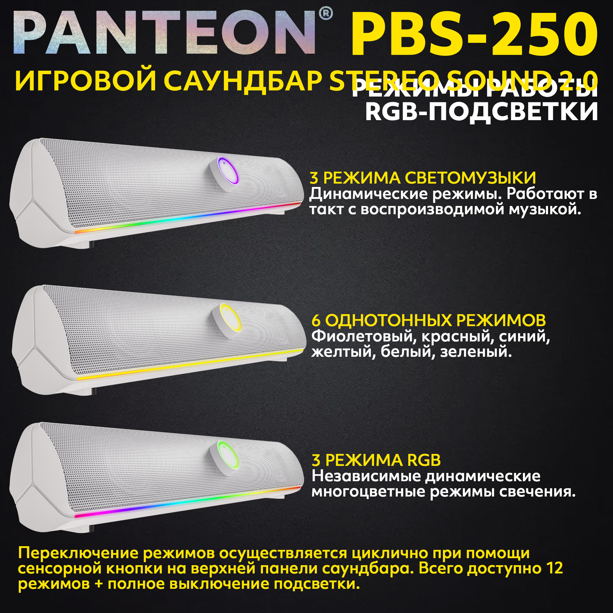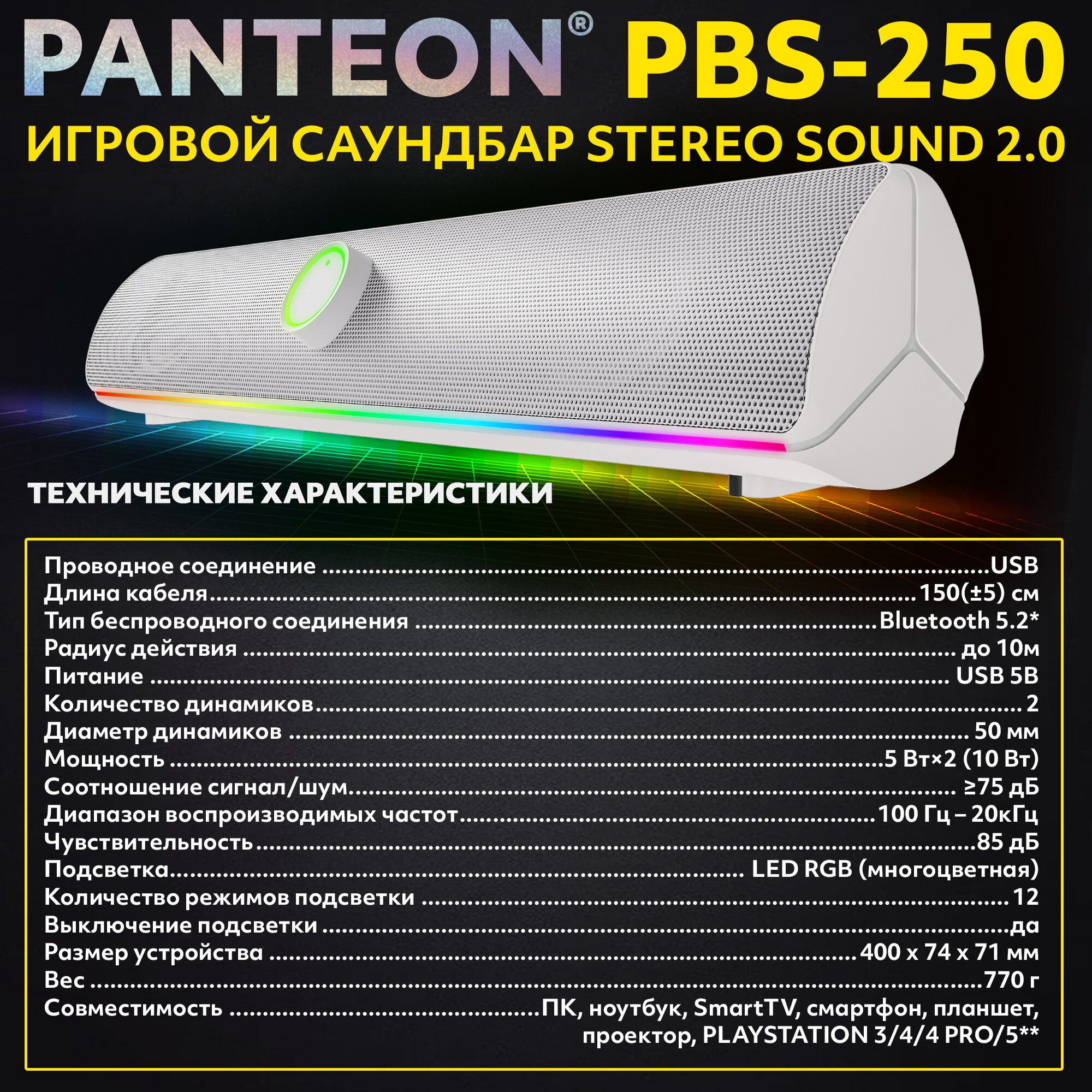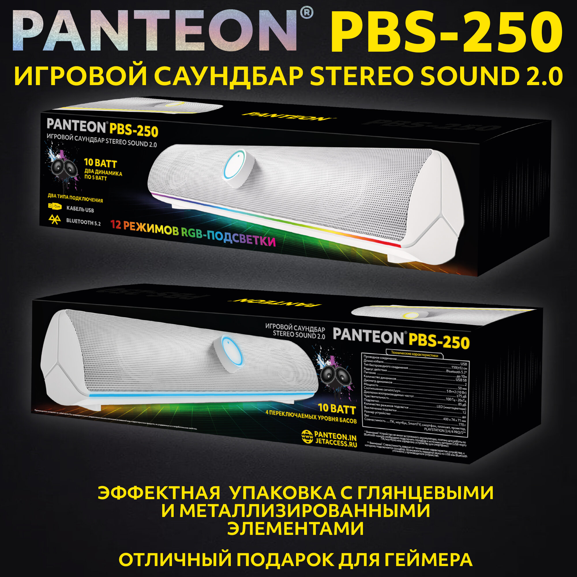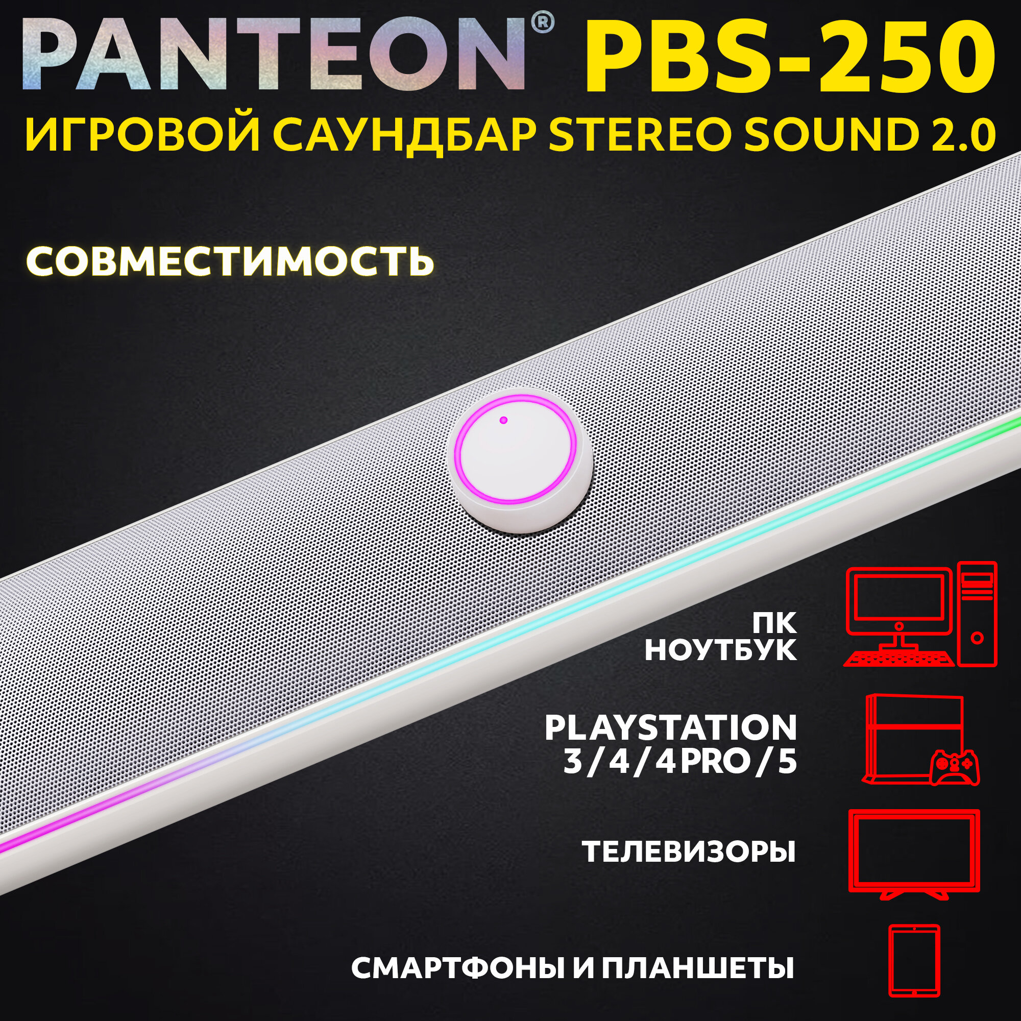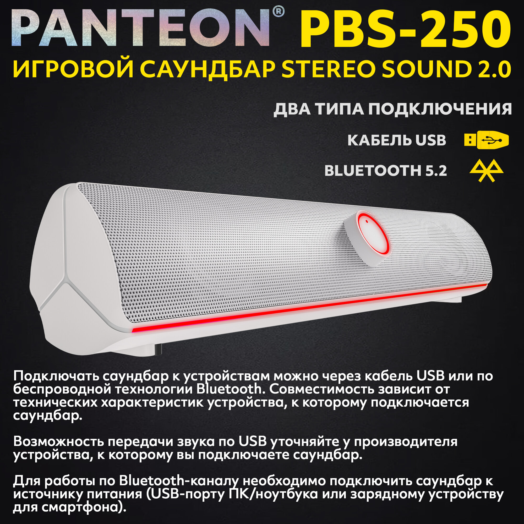 Колонка для компьютера игровой саундбар STEREO SOUND 2.0 PANTEON PBS-250 интересное: