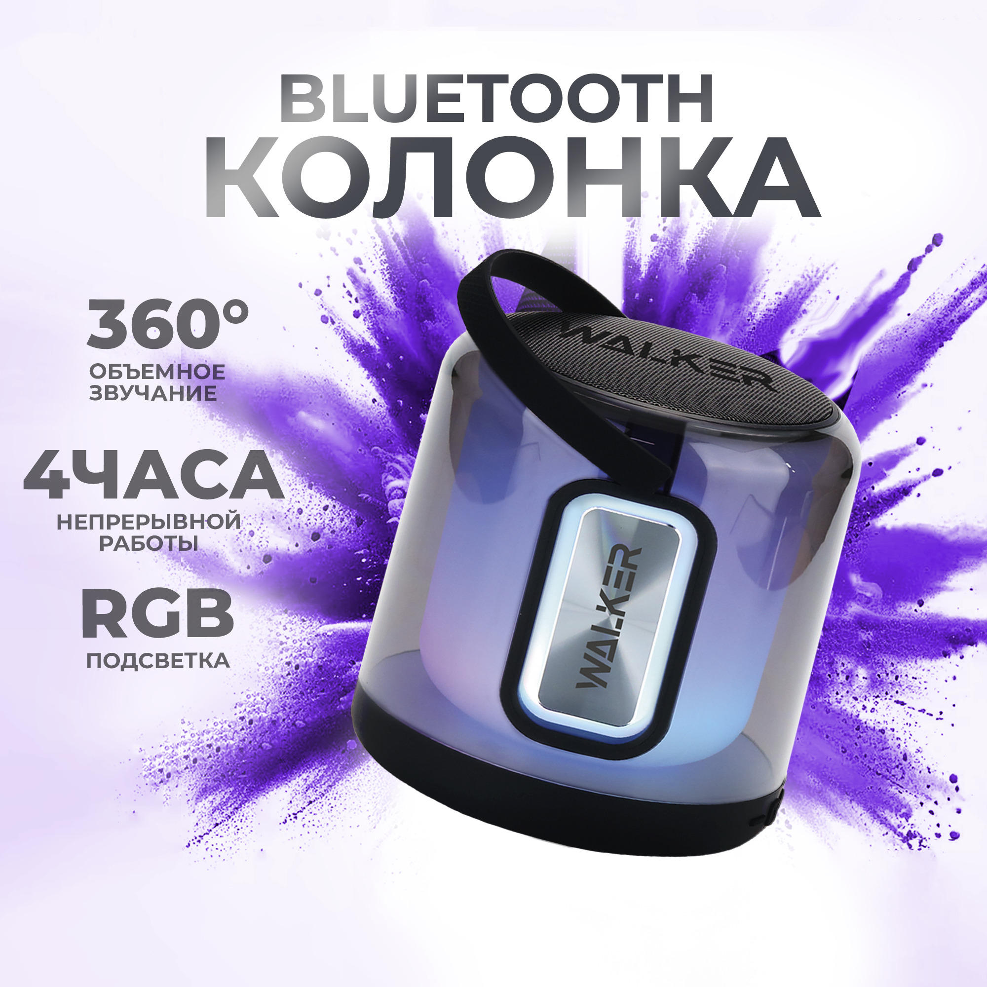 Портативная колонка, WALKER, WSP-180, 8Вт, Bluetooth 5.3, RGB-подсветка, TWS, колонка jbl, колонка блютуз, колонка, колонка портативная, синяя