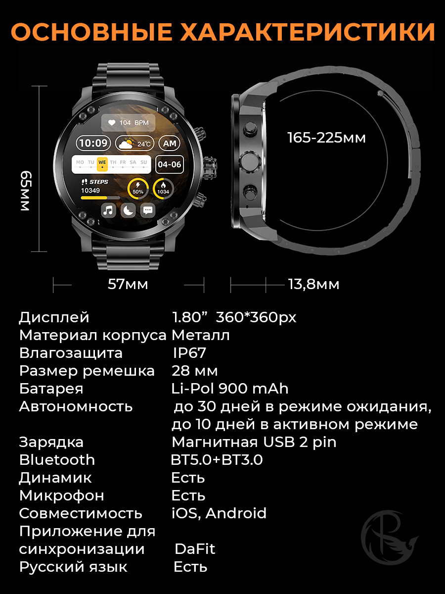 | Мониторинг | акселерометр, калорий, пульса, сна, тонометр, уровня кислорода в крови, физической активности |