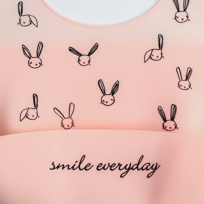 Купить Нагрудник силиконовый, на кнопках, с карманом «Зайцы», цвет розовый