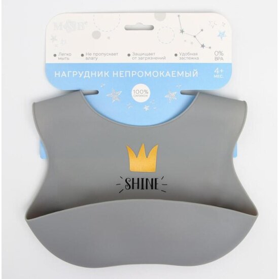 Mum&Baby Нагрудник для кормления «Сияй» силиконовый с карманом, цвет серый