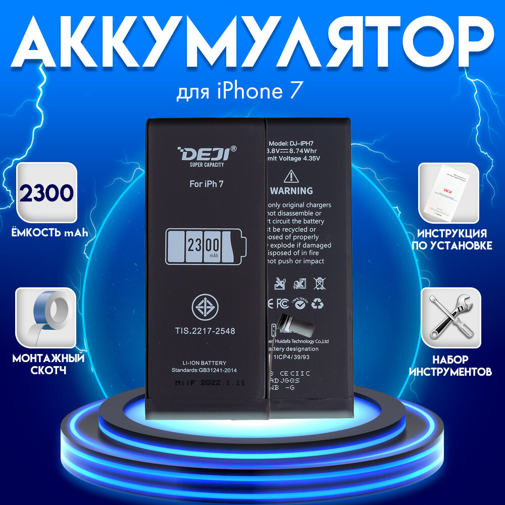 Аккумулятор увеличенной ёмкости для iPhone 7, айфон 7 2300 mah + набор инструментов + монтажный скотч + инструкция интересное: