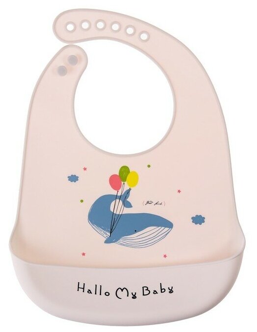 Нагрудник силиконовый на кнопках с карманом «Кит» цвет белый