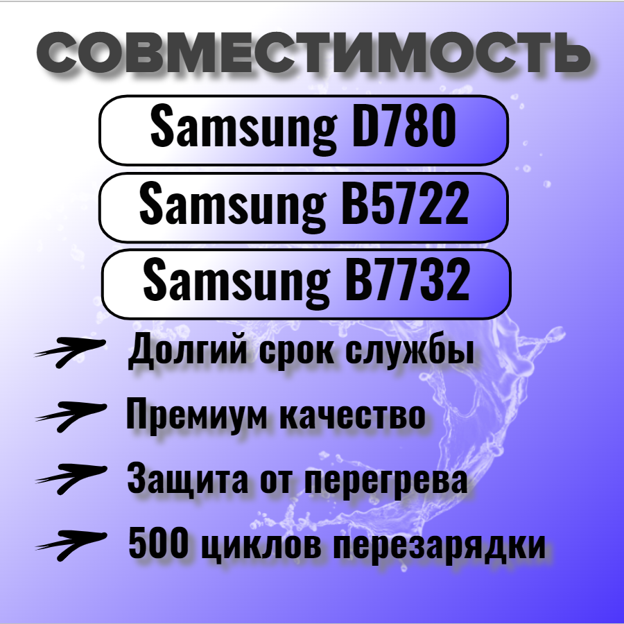| Совместимые модели | Samsung B5722 / Samsung B7722 / Samsung DuoS Olympic SGH-D780 / Samsung DuoS SGH-D780 / Samsung GT-B5722 / Samsung GT-B7722 / Samsung SGH-D780 / Samsung SGH-D780 GE / Samsung SGH-G810 |