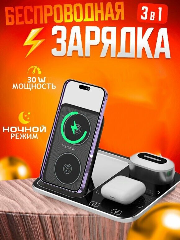 Беспроводная зарядка 3 в 1 для телефонов /зарядник для смартфона и наушников iPhone, Xiaomi/Док станция для AirPods Pro и часов Apple Watch интересное:
