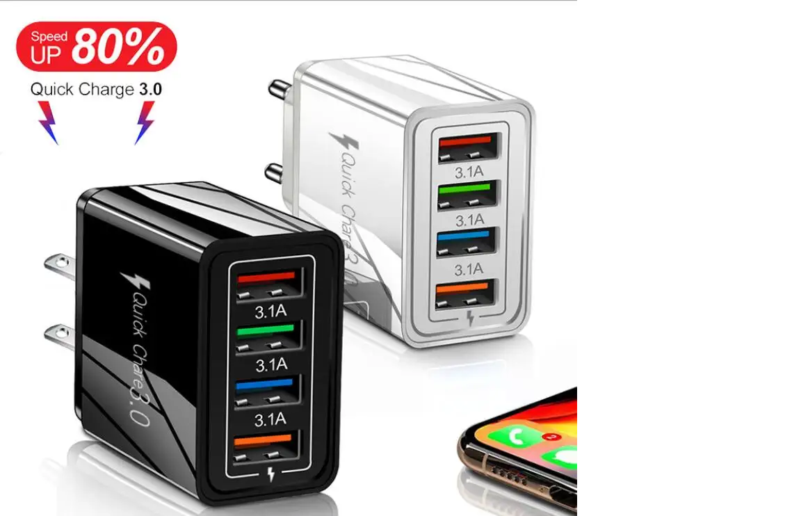 Зарядное устройство для телефона USB с функцией быстрой зарядки, блок питания, адаптер, белый
