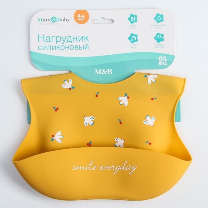 Mum&Baby Нагрудник для кормления «Птички» силиконовый с карманом, цвет желтый