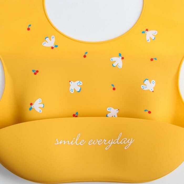 Купить Нагрудник силиконовый, на кнопках, с карманом «Птички», цвет желтый