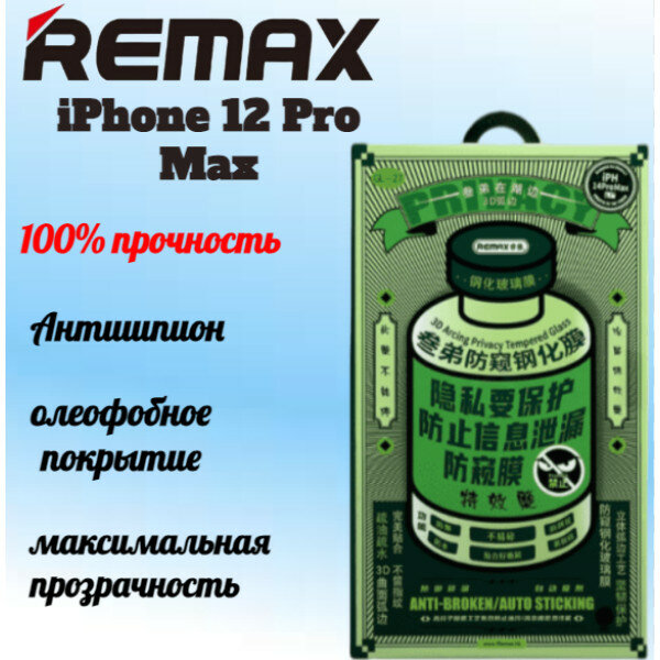 СохранитьЗащитное стекло для iPhone 12 Pro Max 6.7" Remax GL-27 Антишпион черное интересное: