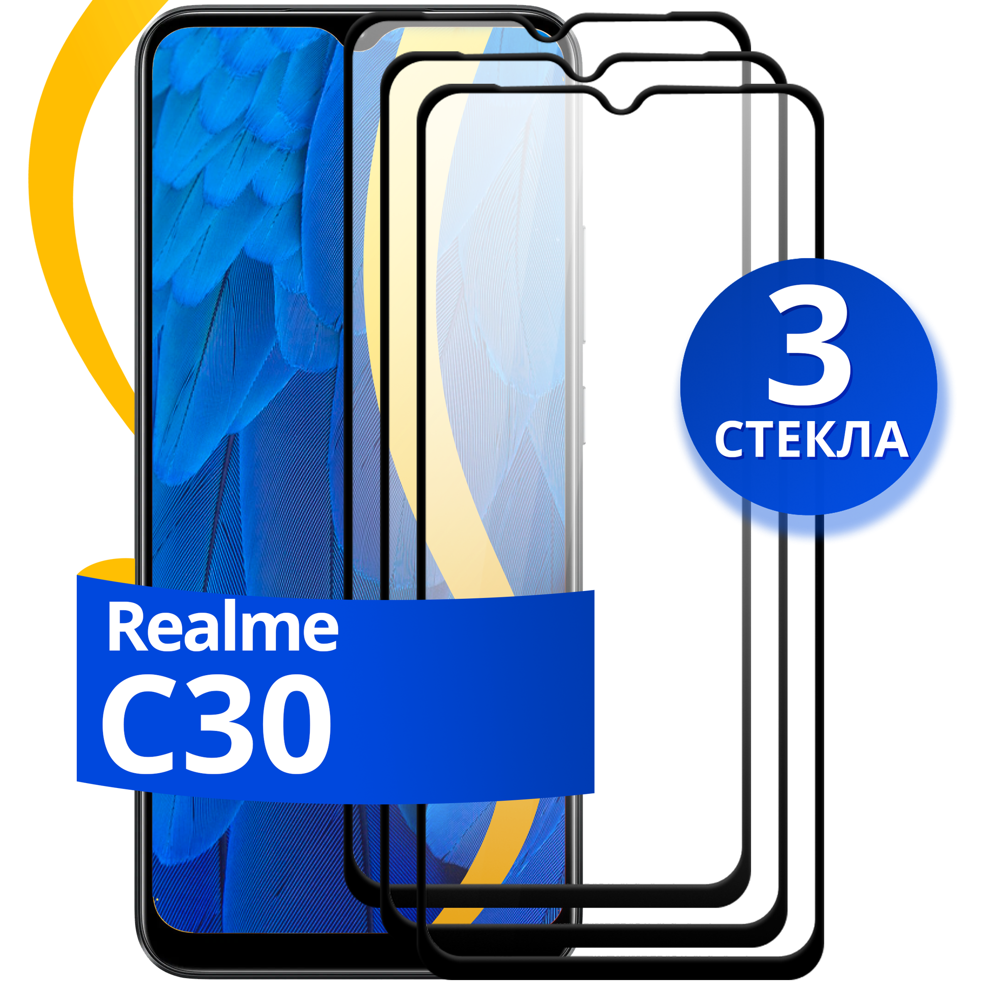 Купить Комплект из 3 шт. Защитное стекло для Realme C30 / Противоударное стекло на смартфон Реалми С30