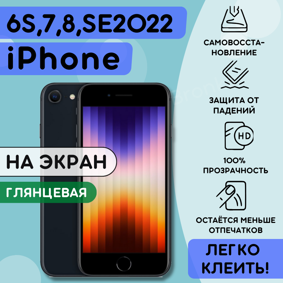 СохранитьГидрогелевая полиуретановая пленка на iPhone 6s, 7, 8, SE2020, гидрогелиевая защитная бронеплёнка на apple iPhone 6s, 7, 8 интересное: