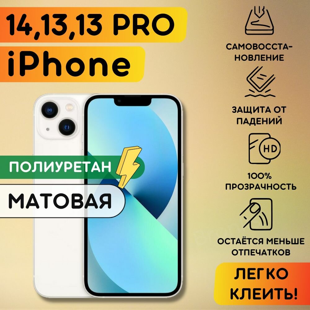 Матовая гидрогелевая полиуретановая пленка на iPhone 13, 13 Pro, iPhone 14, плёнка защитная на айфон 13, 13 про, 14