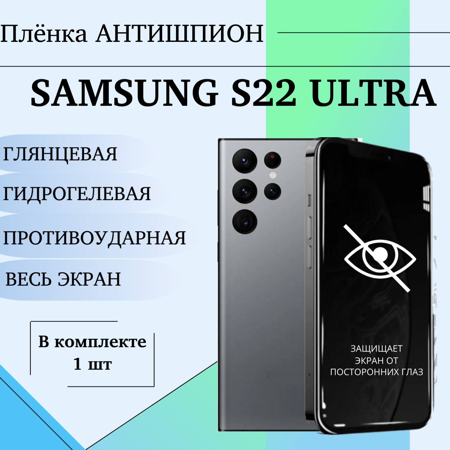 Гидрогелевая пленка для Samsung S22 Ultra антишпион защитная глянцевая под чехол 1 шт