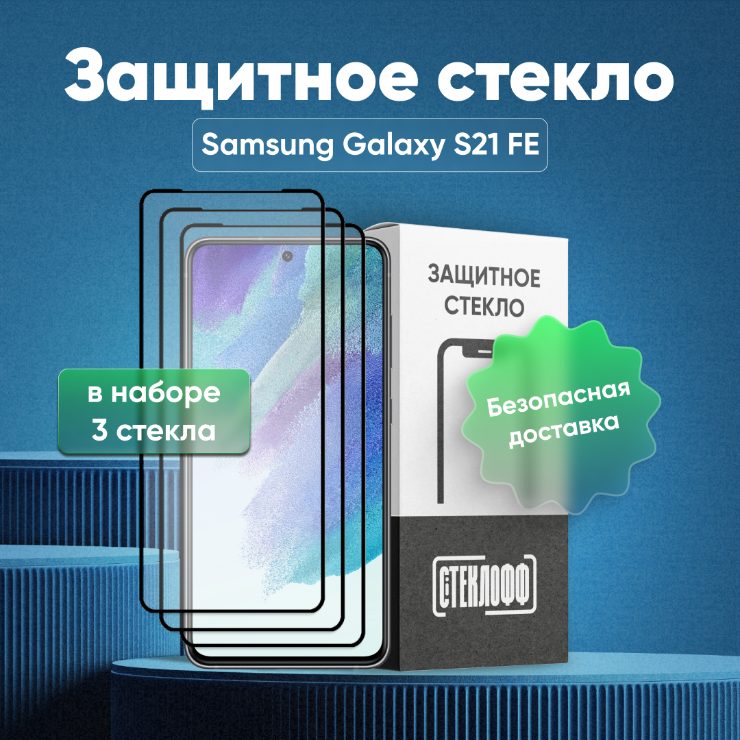 Набор защитных стекол для Samsung Galaxy S21 FE c полным покрытием, серия Стеклофф Base, 3 шт интересное: