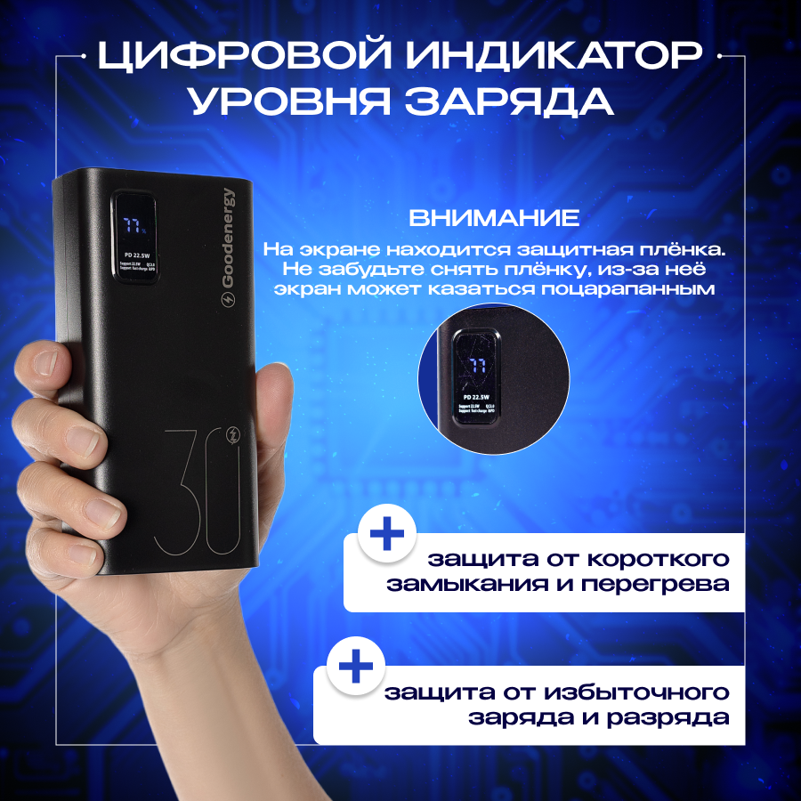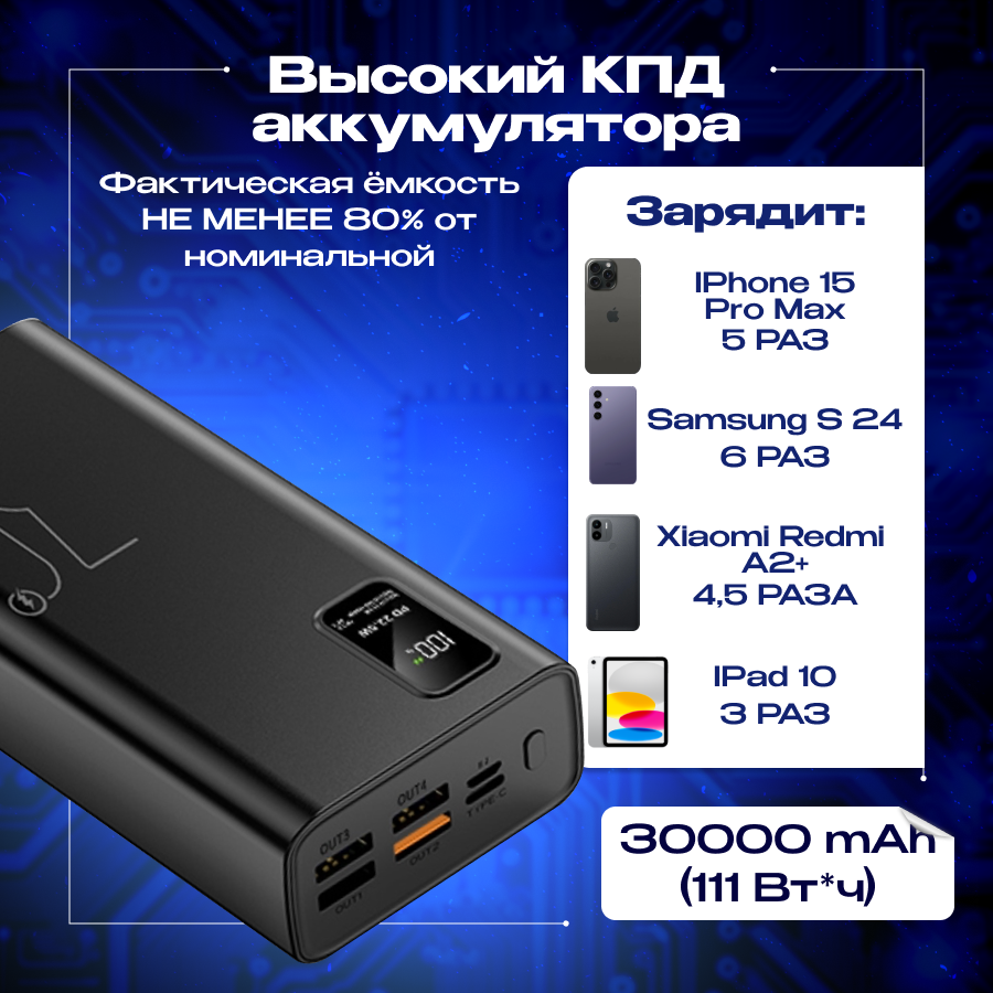 Повербанк Powerbank 30000mah с быстрой зарядкой, внешний аккумулятор для телефона iPhone, Xiaomi, Samsung интересное: