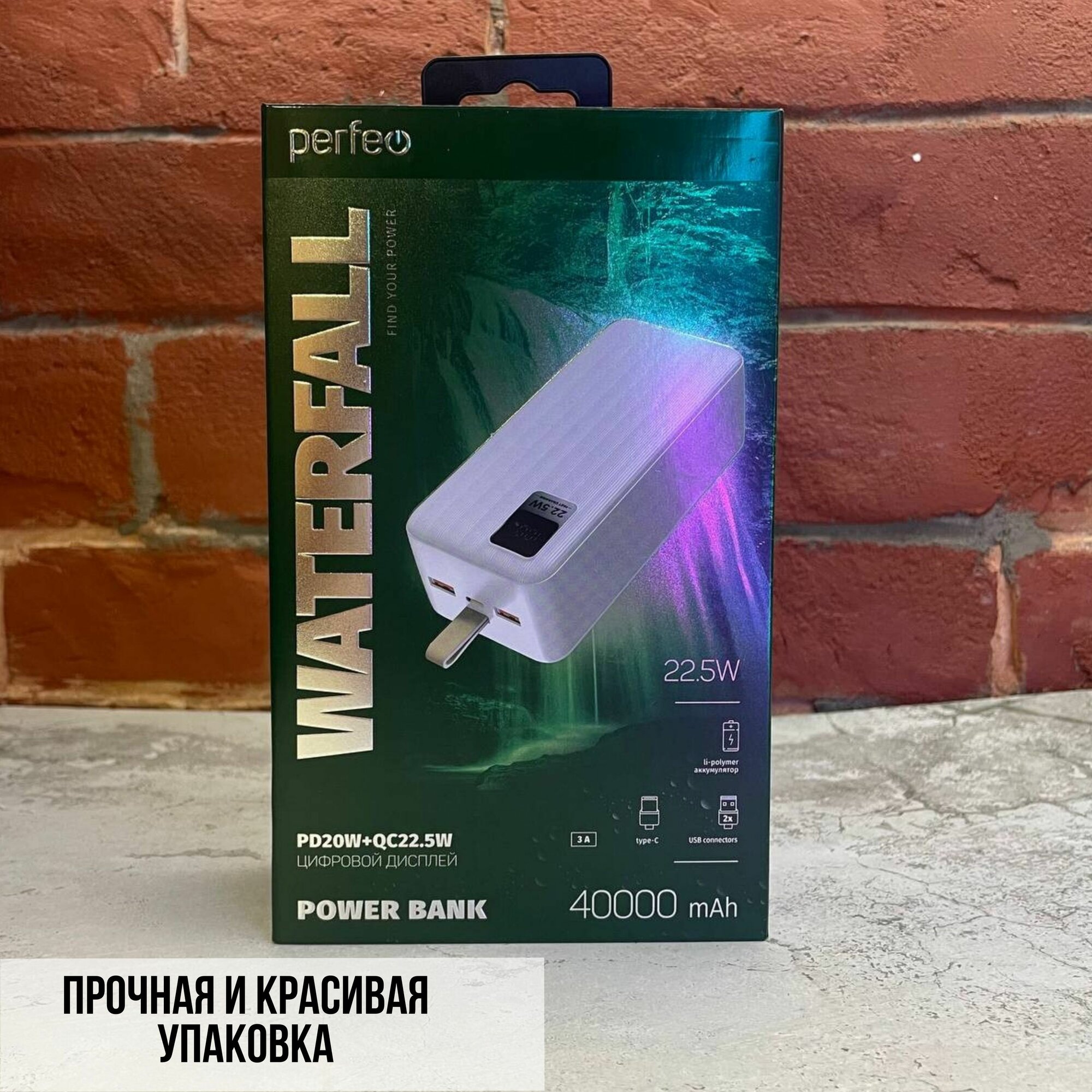 Купить Perfeo Аксессуар Powerbank WATERFALL 40000 mAh LED дисплей PD + QC 3.0 Type-C 2 USB Выход: 5A, max 22.5W White PF D0183