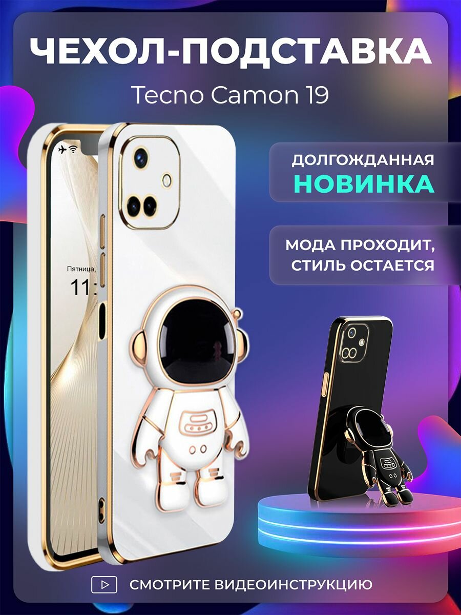 СохранитьЧехол на Tecno Camon 19 защитный бампер с подставкой-попсокетом Космонавт на Техно Камон 19 Белый интересное: