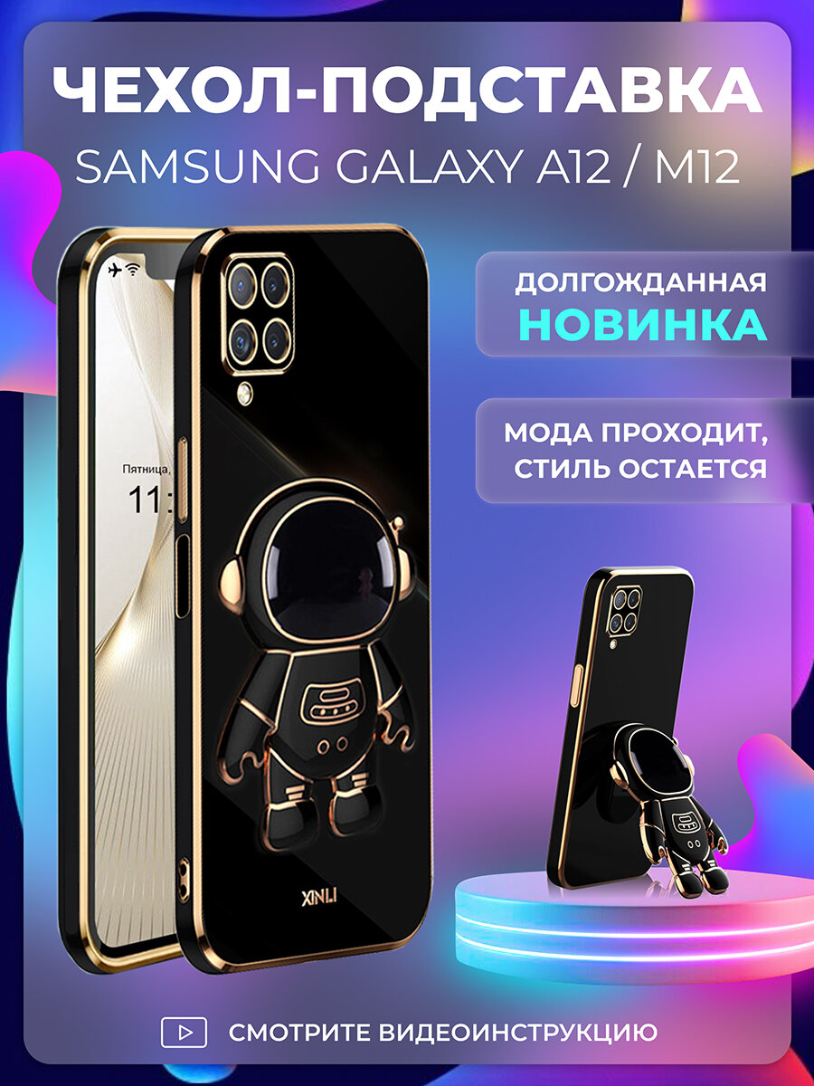 СохранитьЧехол на Samsung Galaxy A12 / M12 защитный бампер с подставкой-попсокетом Космонавт на Самсунг Галакси А12 / М12 Черный интересное: