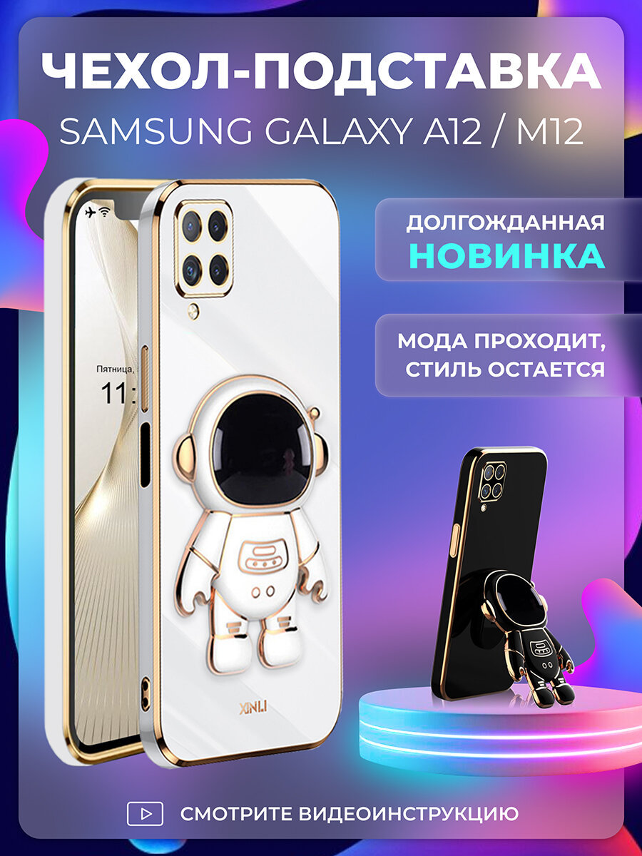 СохранитьЧехол на Samsung Galaxy A12 / M12 защитный бампер с подставкой-попсокетом Космонавт на Самсунг Галакси А12 / М12 Белый интересное: