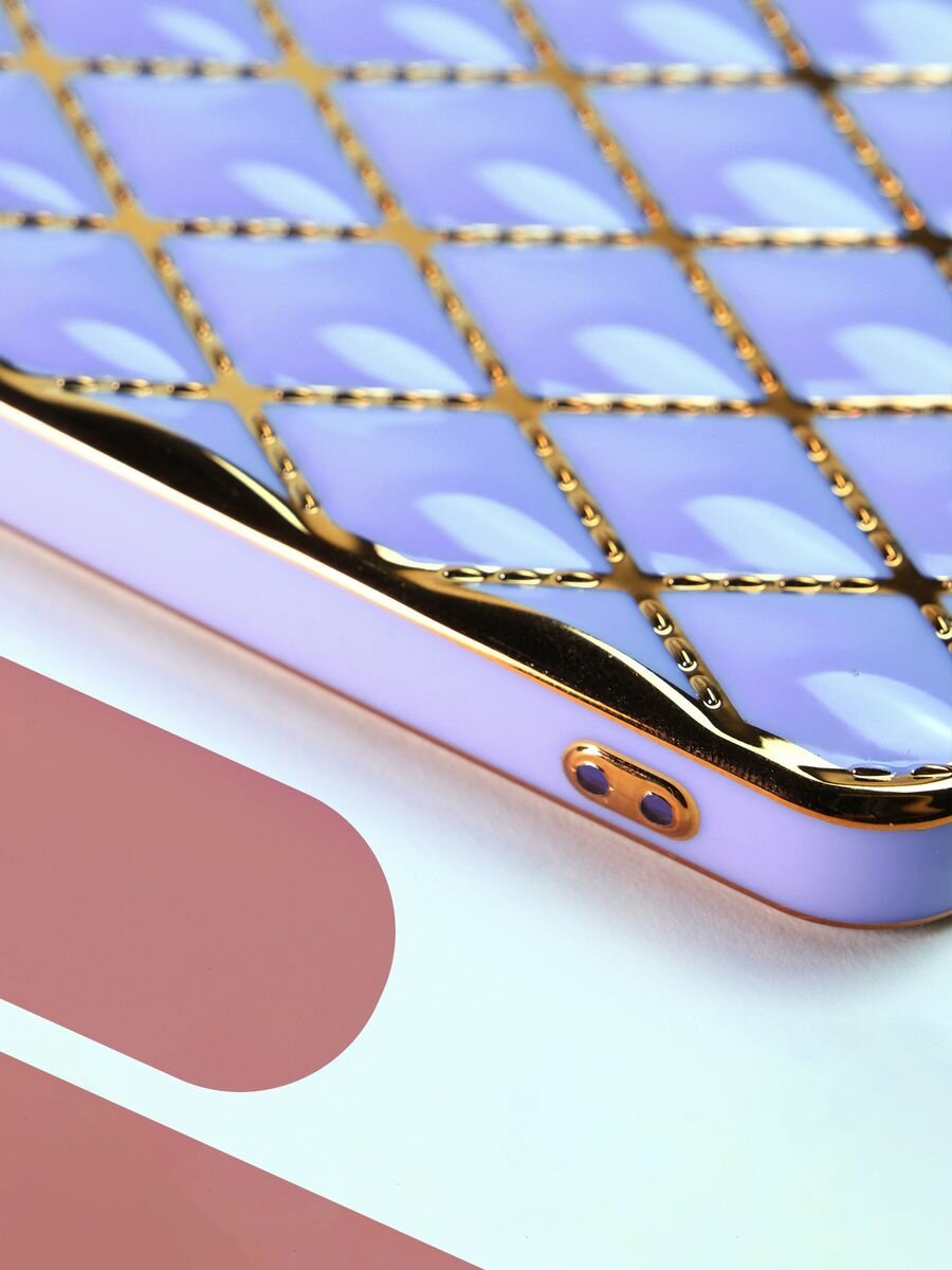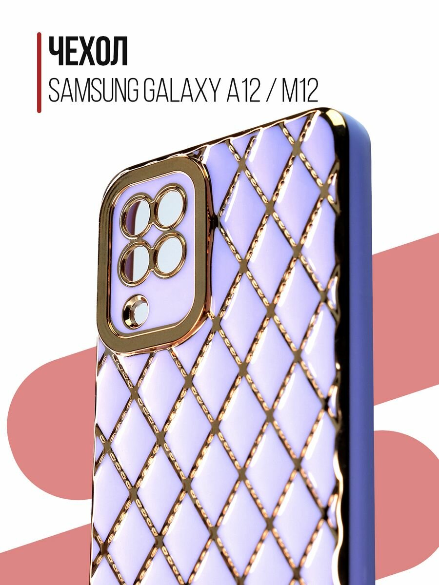 Купить Чехол на Samsung Galaxy A12 / M12 силиконовый защитный бампер на Самсунг Галакси A12 / М12 с золотой рамкой Сиреневый