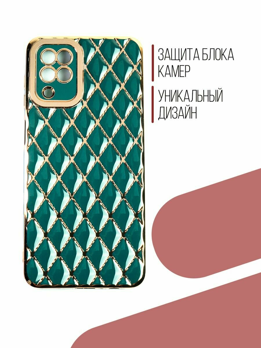 СохранитьЧехол на Samsung Galaxy A12 / M12 силиконовый защитный бампер на Самсунг Галакси A12 / М12 с золотой рамкой Зеленый интересное: