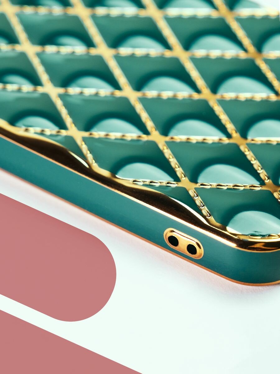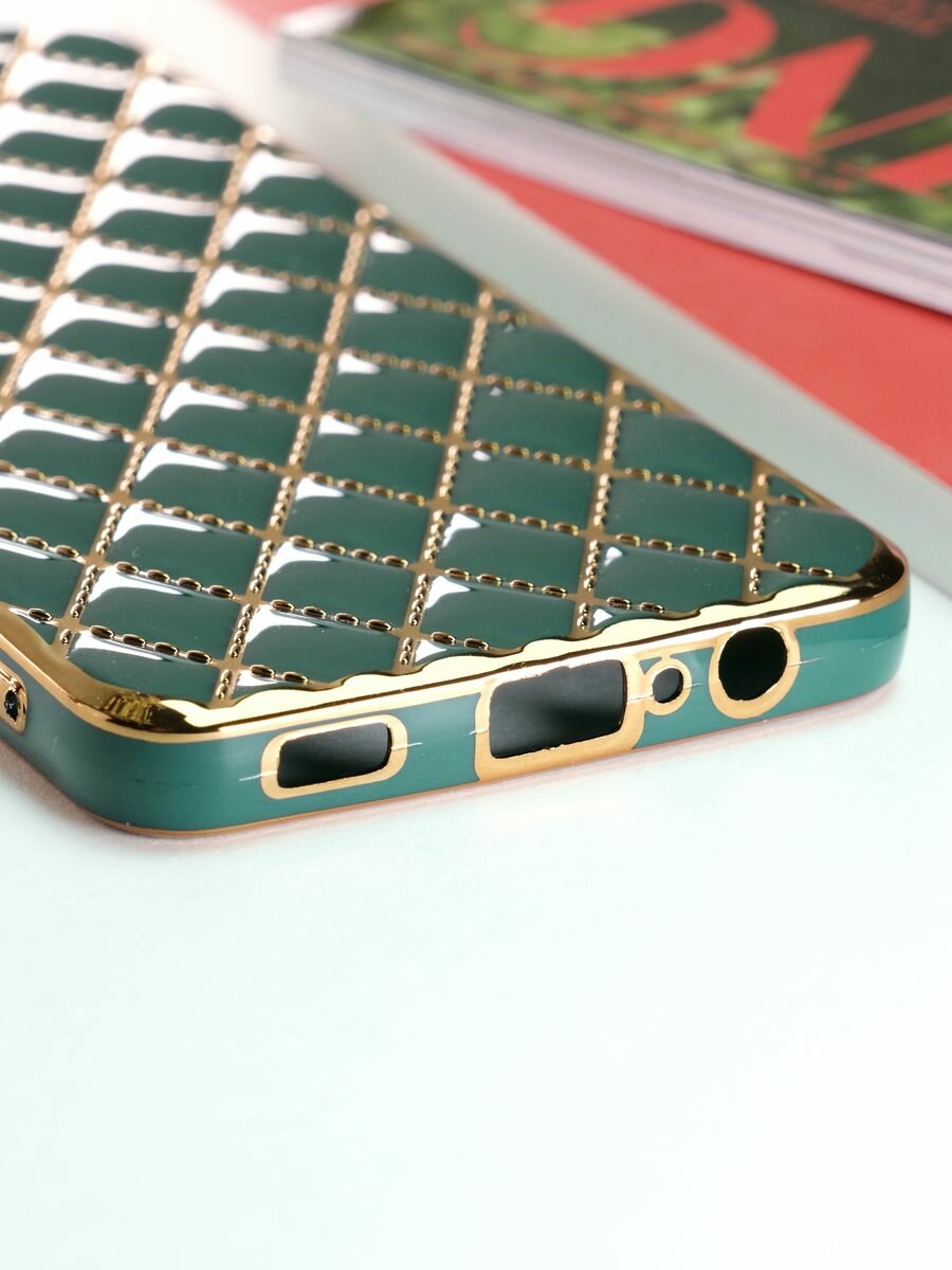 Купить Чехол на Samsung Galaxy A12 / M12 силиконовый защитный бампер на Самсунг Галакси A12 / М12 с золотой рамкой Зеленый