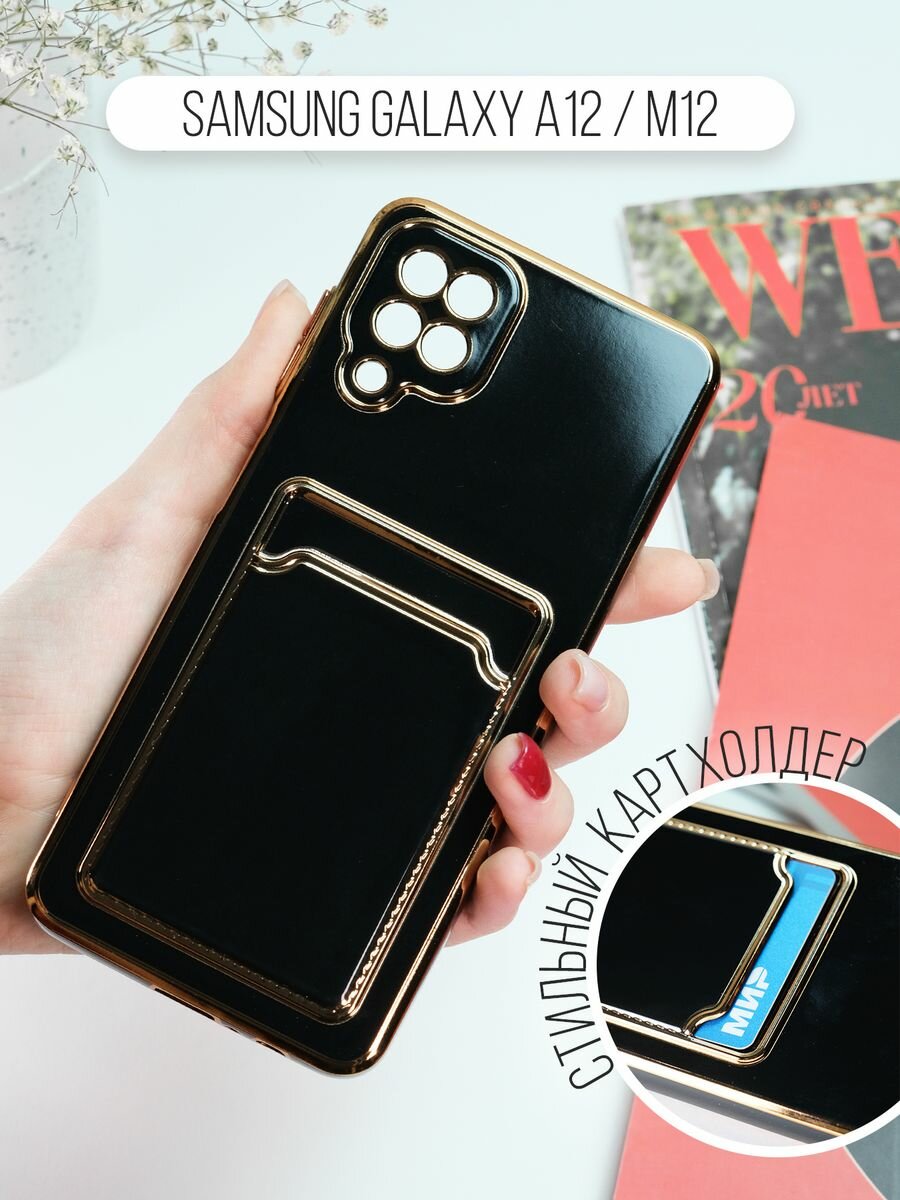 СохранитьЧехол на Samsung Galaxy A12 / M12 с золотой рамкой противоударный бампер с карманом для карт на Самсунг Галакси А12 / М12 Черный интересное: