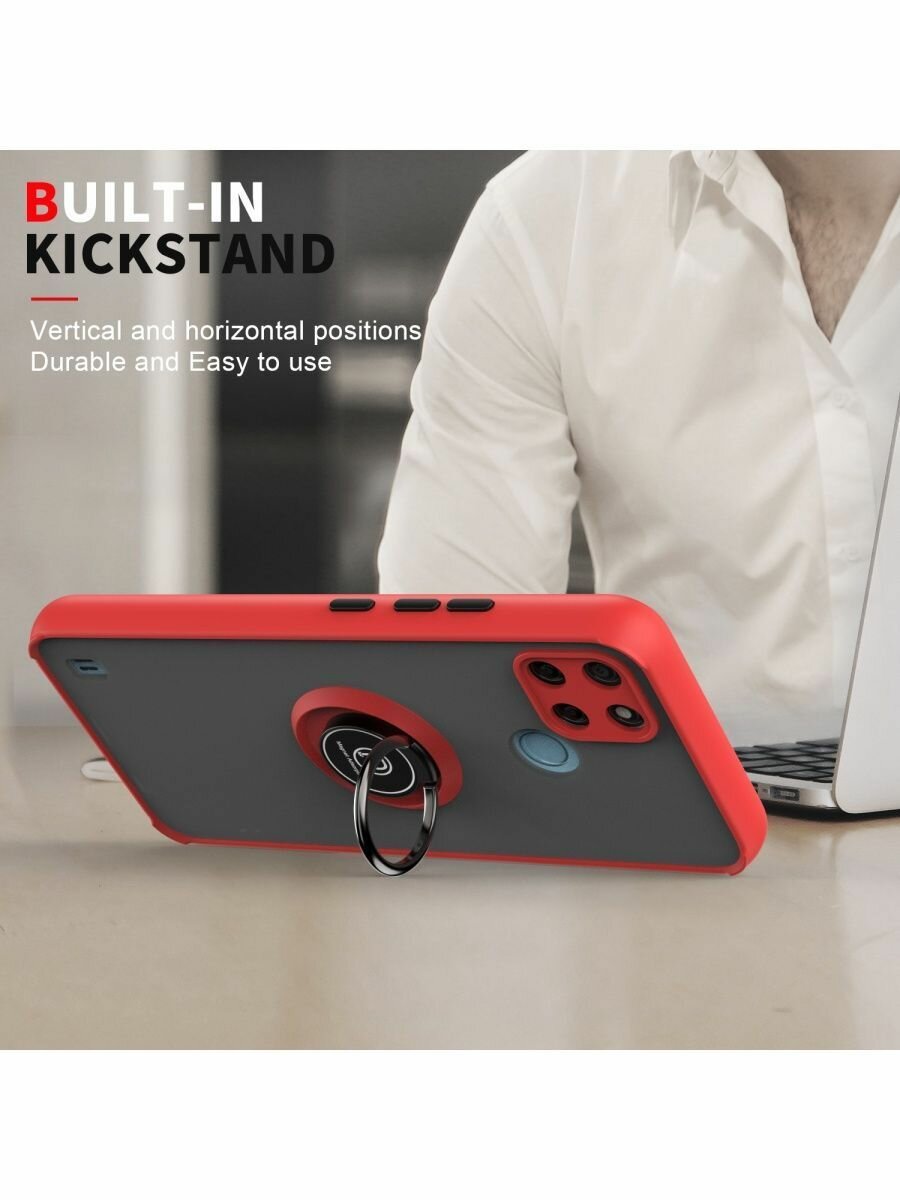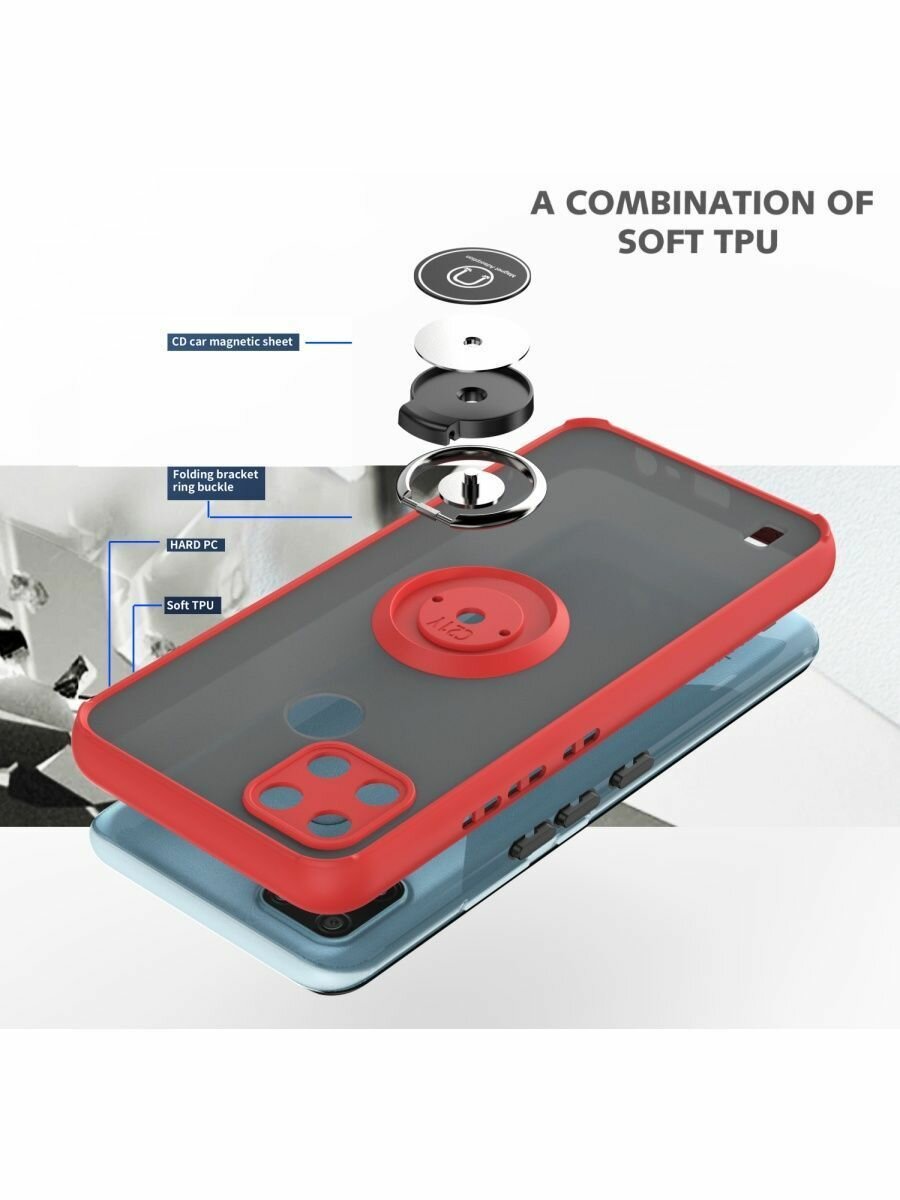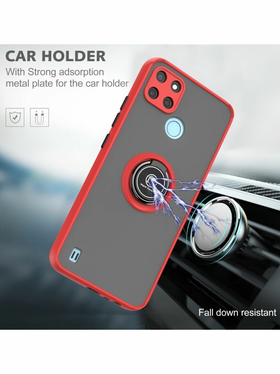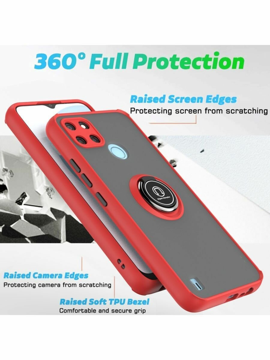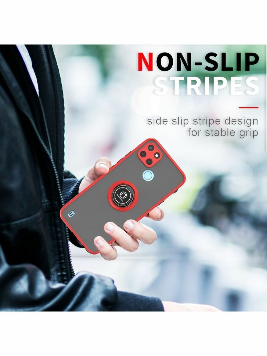 Купить Чехол на realme c21y/c25/c25s с кольцом подставкой, черный, прозрачный