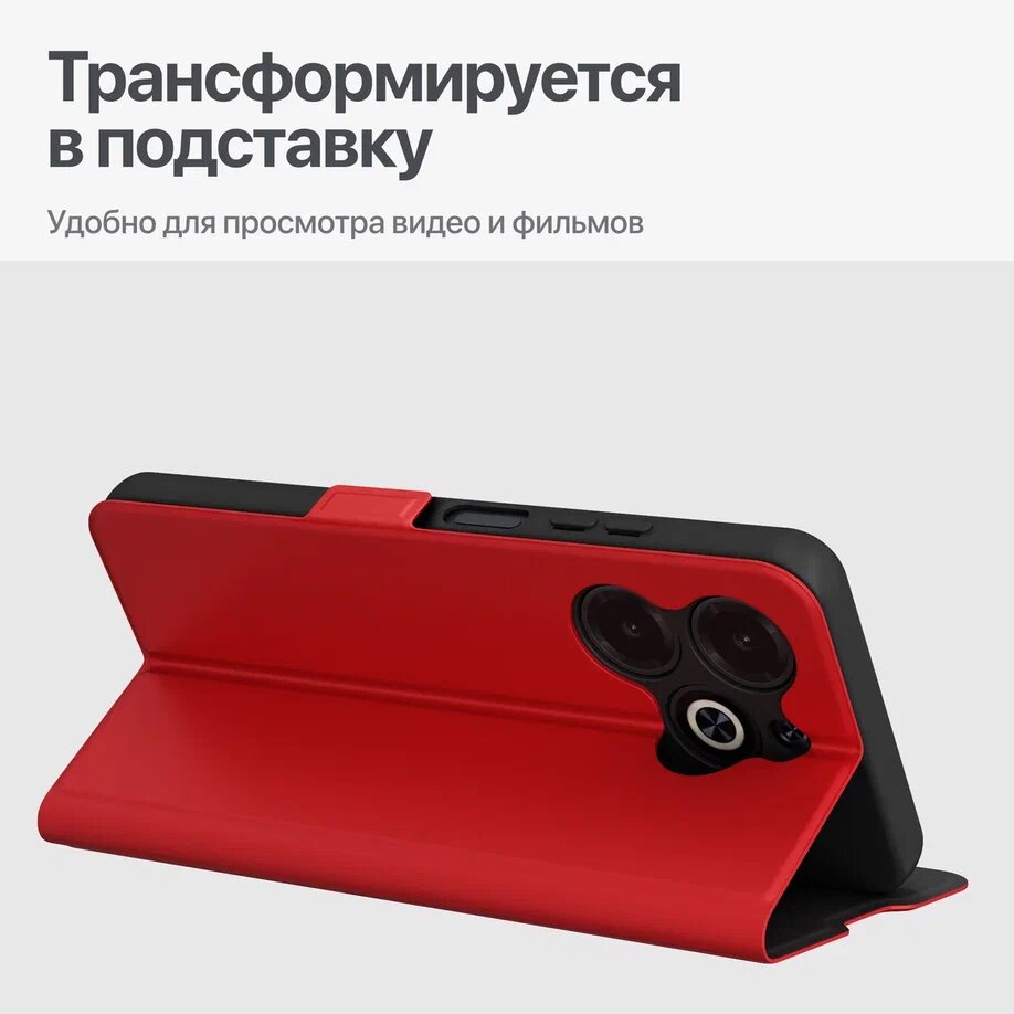 Чехол книжка для Infinix HOT 40i / Инфиникс Хот 40i из искусственной кожи, с карманом, красный интересное: