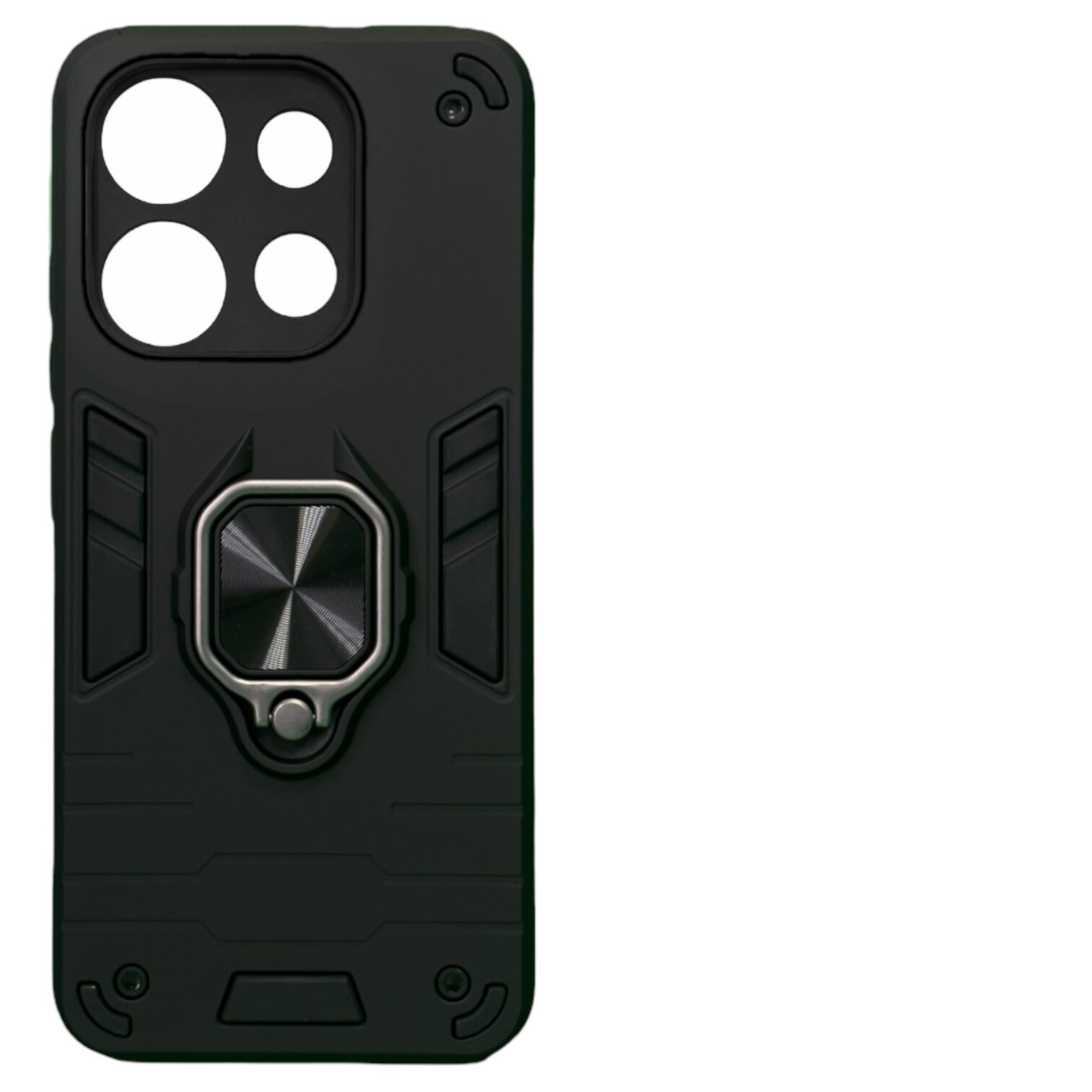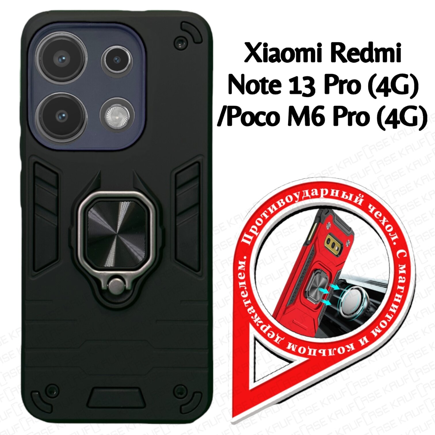 Купить Противоударный чехол на Xiaomi Redmi Note 13 Pro 4G/ Poco M6 Pro (6.67"), черный. Кольцо-держатель и магнитное крепление, яркие пластиковые защитные вставки